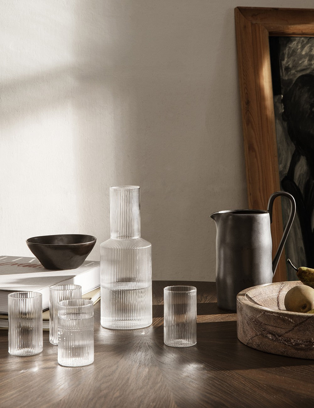 A coleção Ripple da Ferm Living brinca com a simetria e ondulação de cada peça, criando utensílios elegantes e funcionais que alegram qualquer mesa.