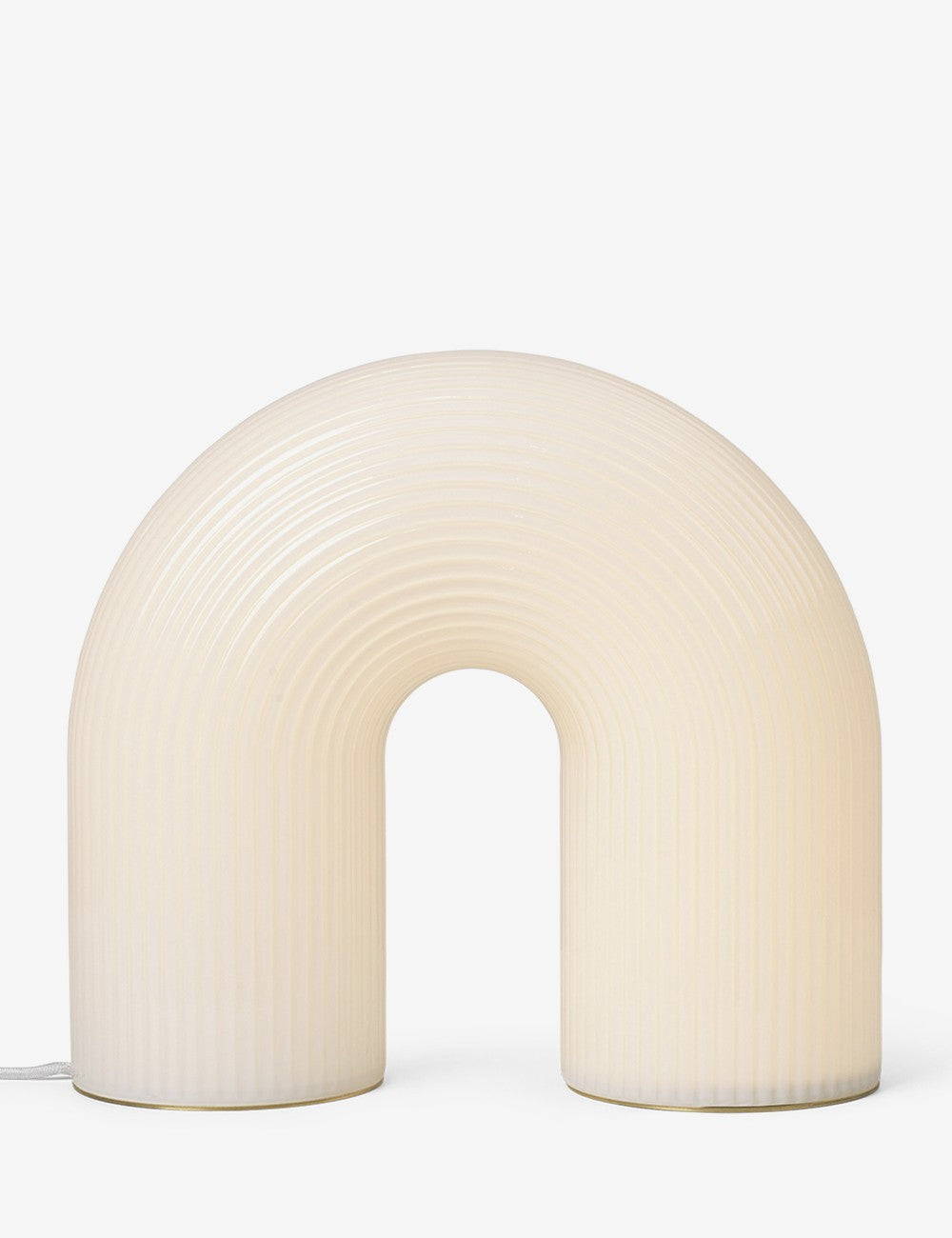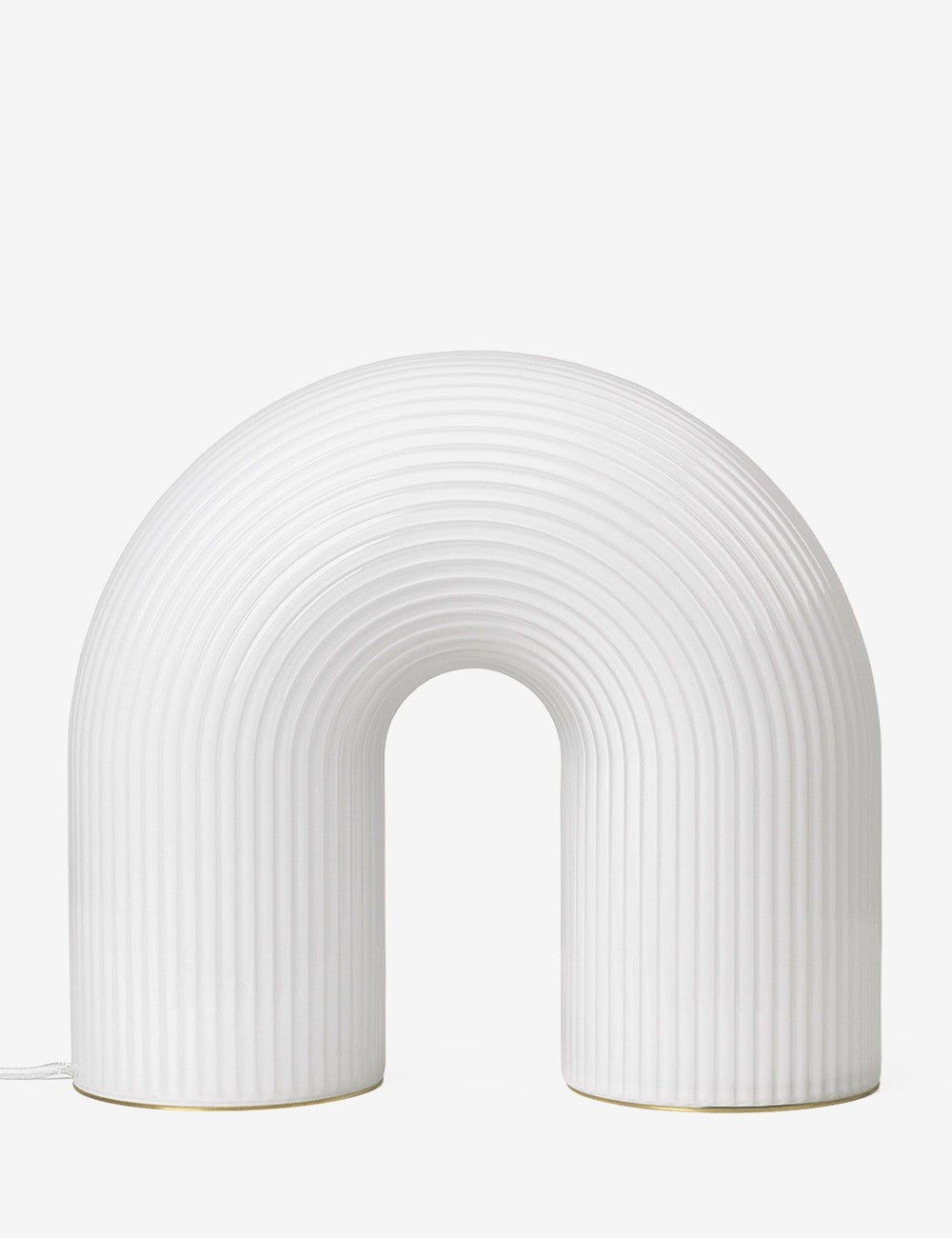 Um design ousado na forma de um arco estrutural inspirado nas colunas da civilização antiga dá ao Vuelta Lamp da Ferm Living uma aparência distinta e elegante.