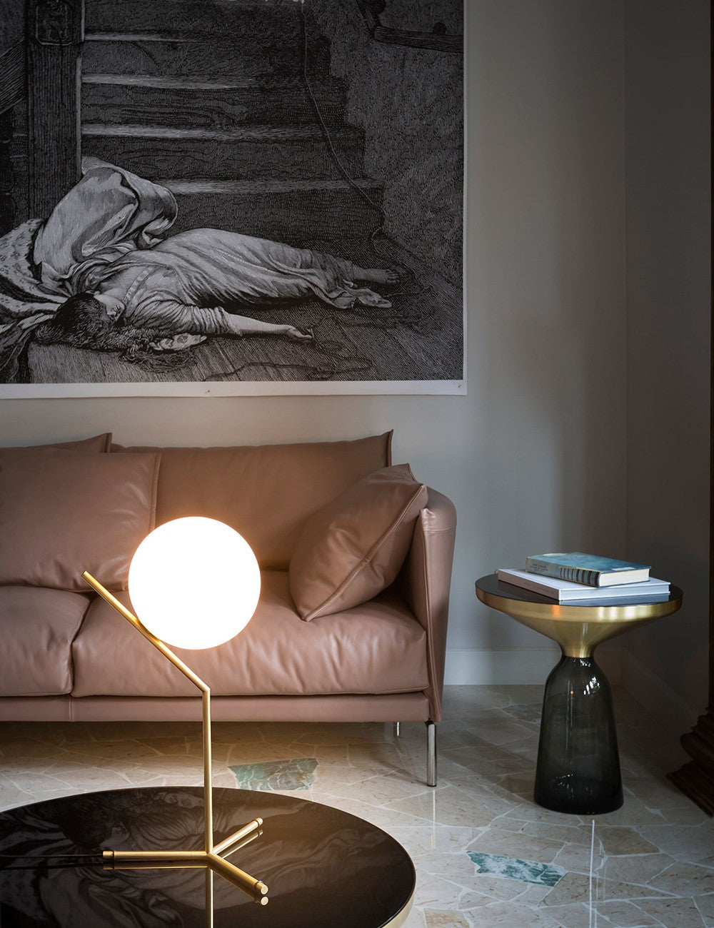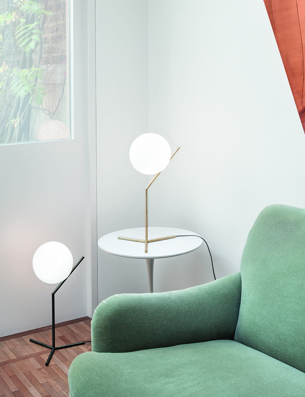 O design do IC Lights é composto por um abajur de vidro soprado esférico e uma estrutura de metal leve.