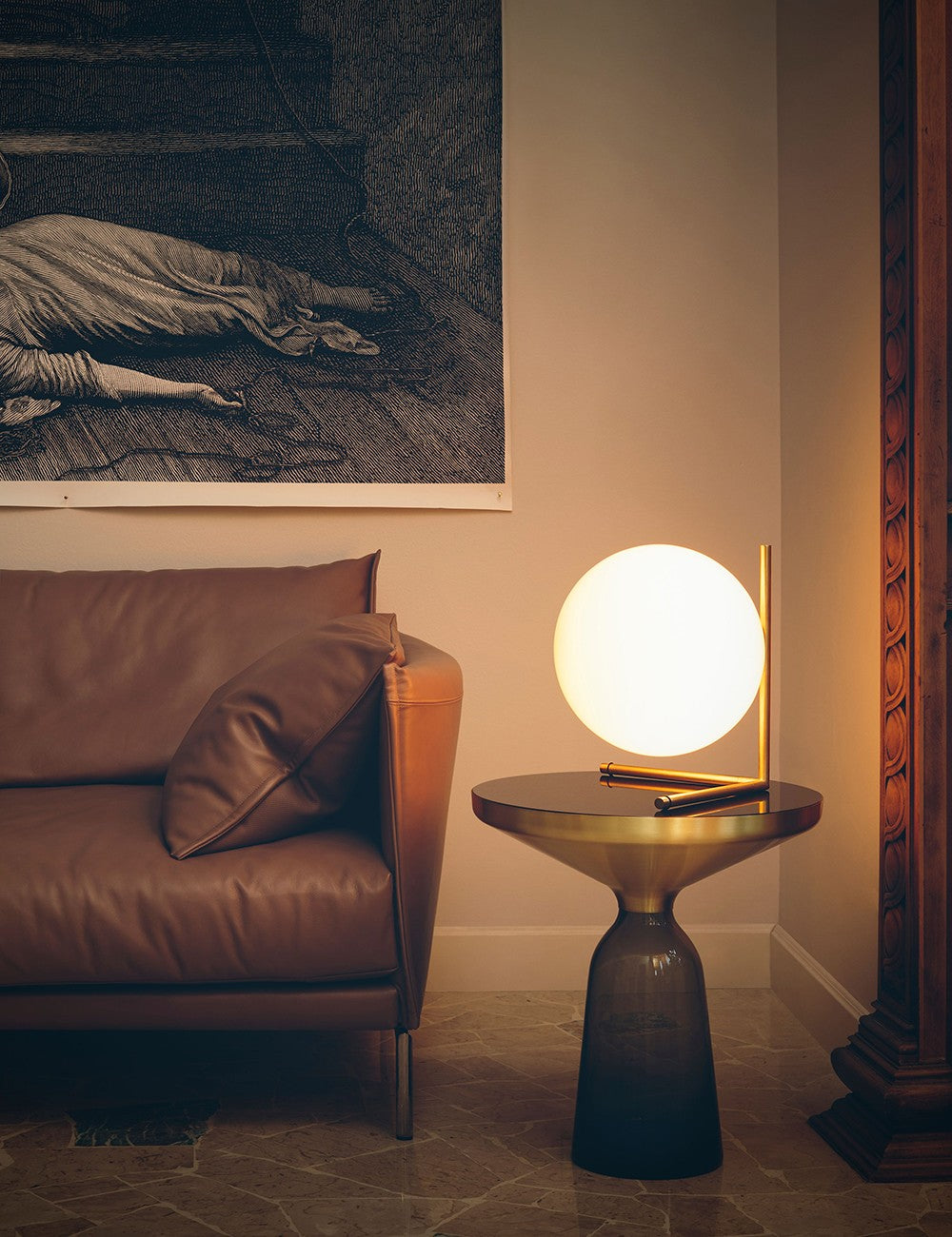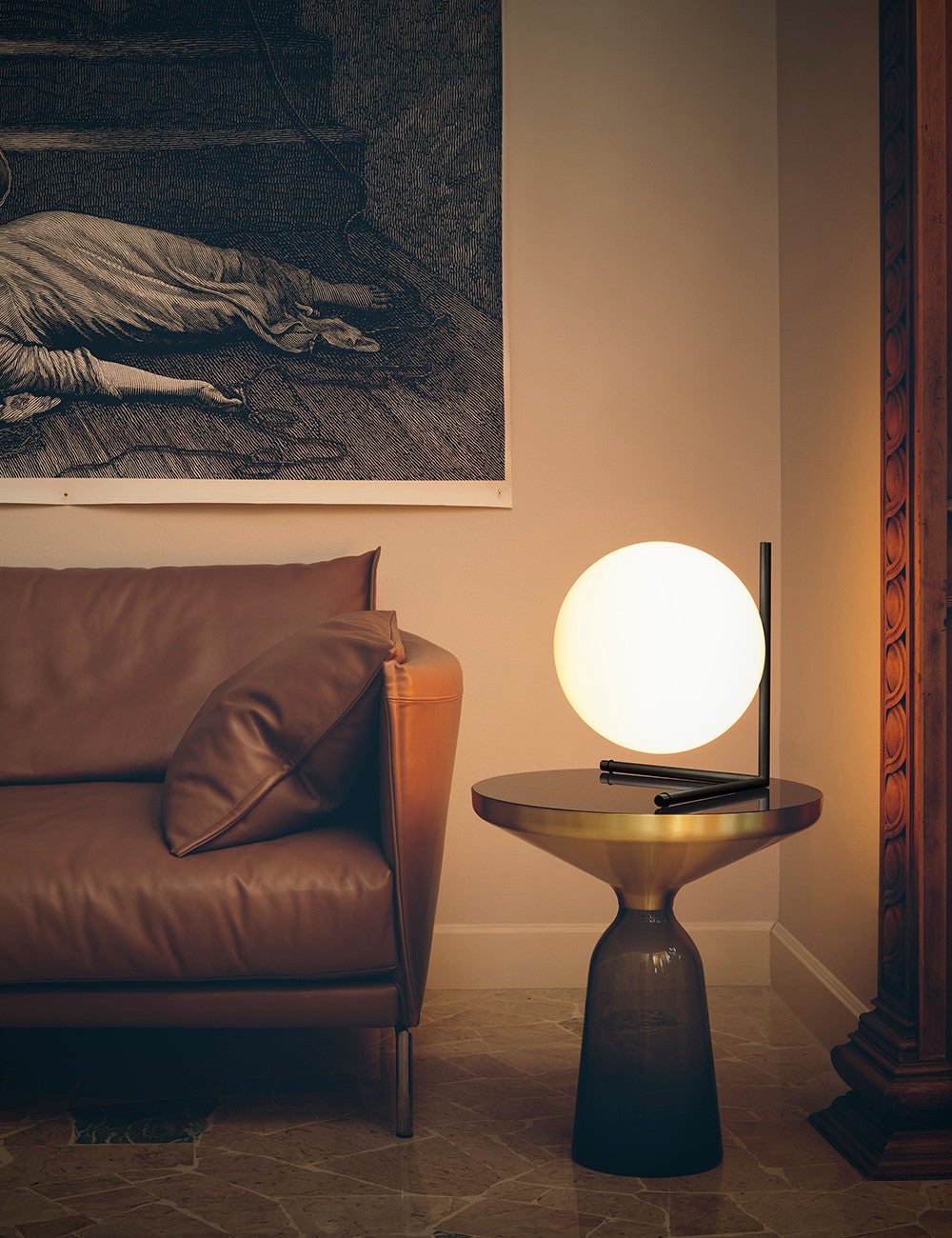 O design do IC Lights é composto por um abajur de vidro soprado esférico e uma estrutura de metal leve.