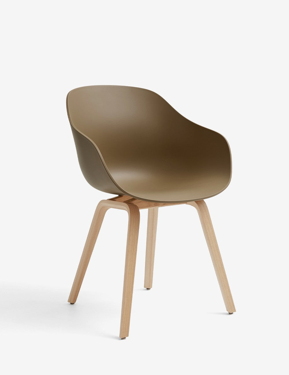 O assento aerodinâmico da cadeira é fabricado em polipropileno reciclado pós-consumo e a sua estrutura de madeira é fabricada em carvalho ou nogueira e acabada com um verniz ecológico à base de água.