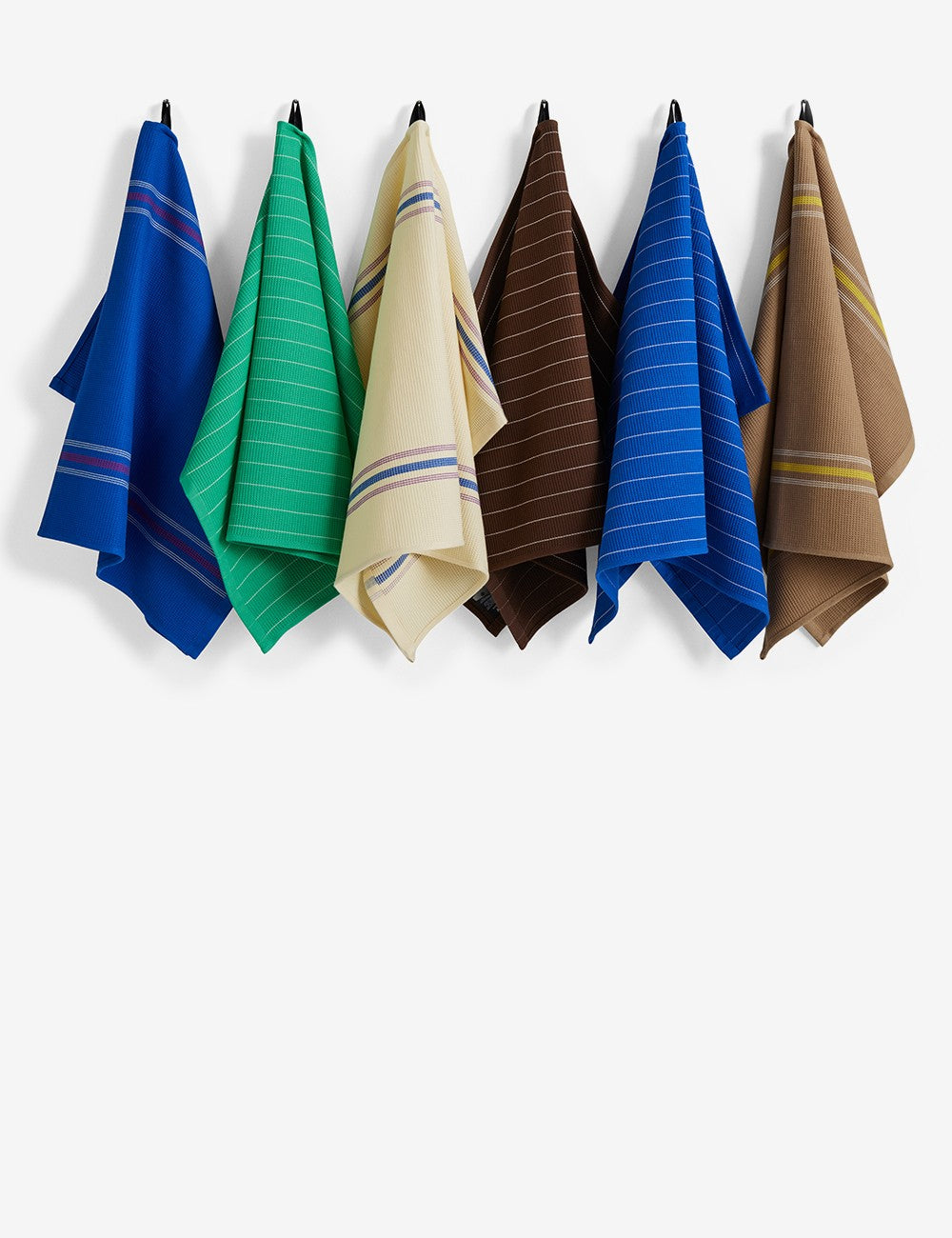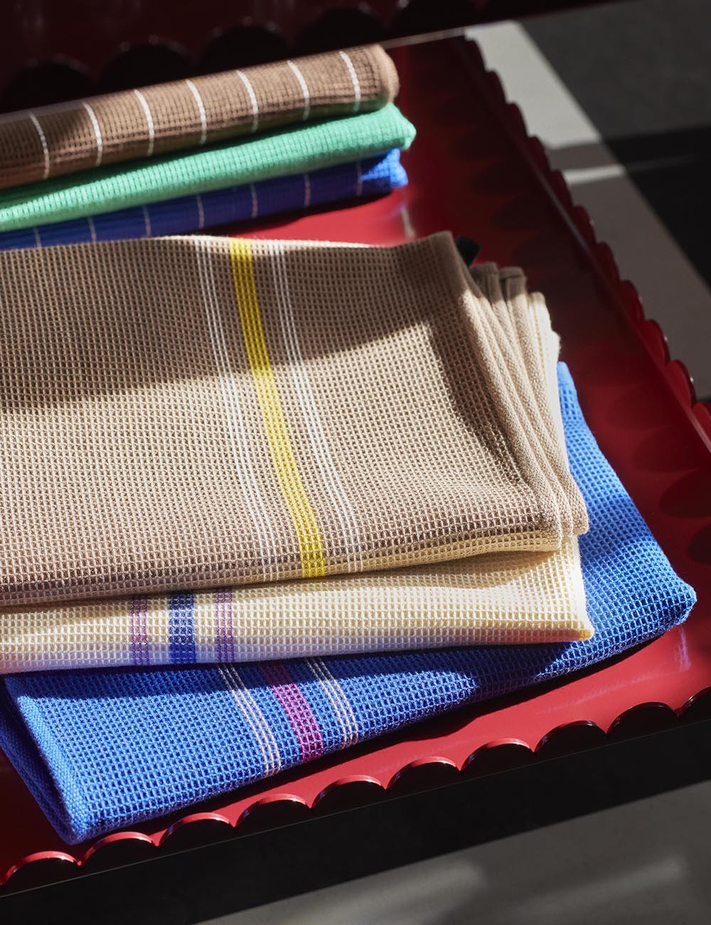 Confeccionada em algodão OEKO-TEX durável, a série Canteen é uma gama de panos de cozinha com um design de listras colorido.
