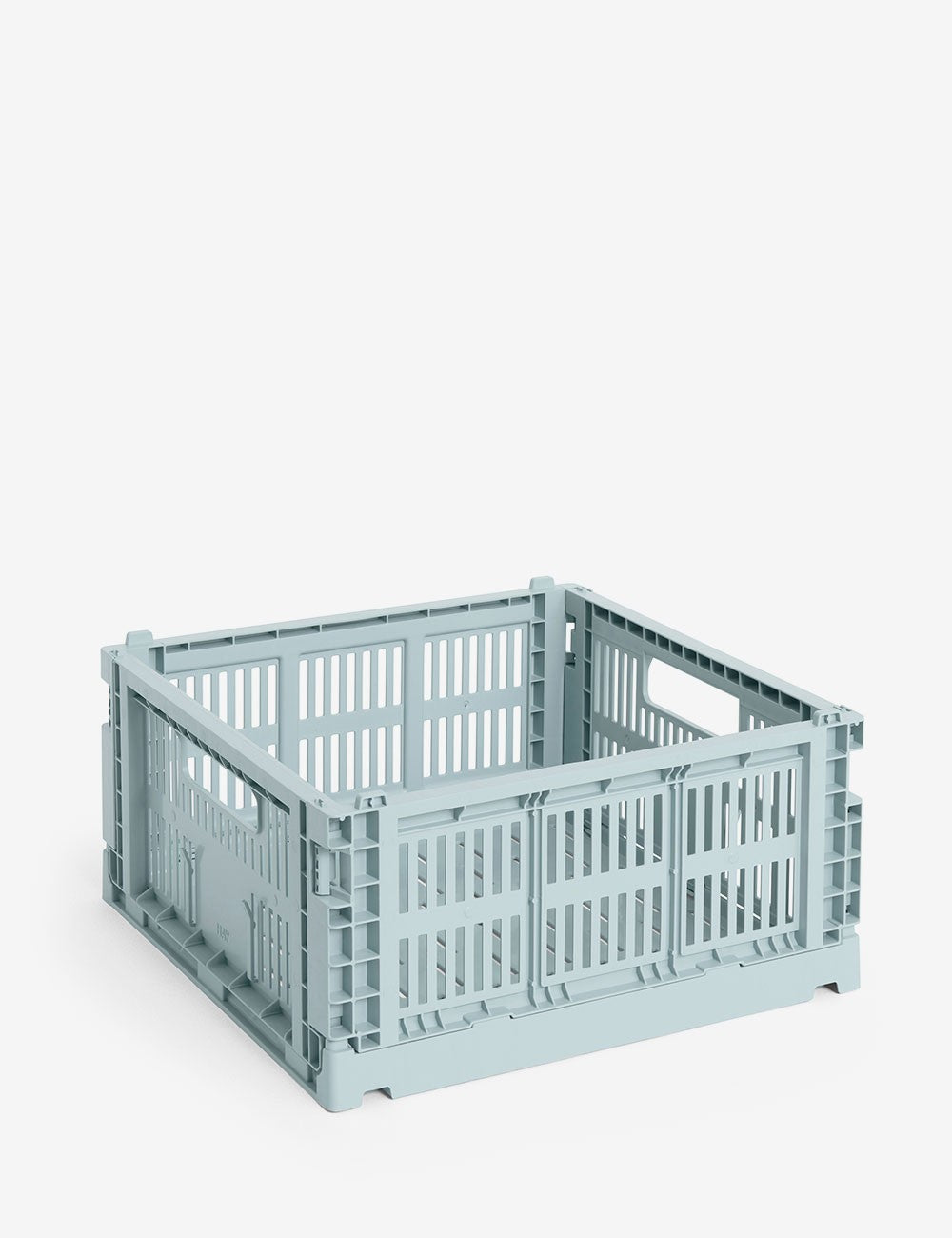 HAY Colour Crate é uma série de caixas de armazenamento coloridas com design perfurado, que também são dobráveis ​​e empilháveis.