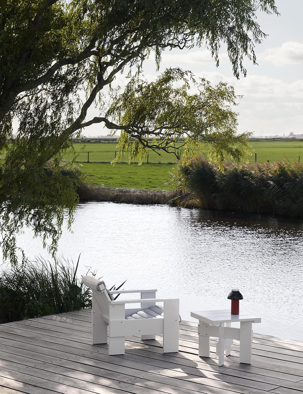 Crate foi originalmente projetado em 1934 por Gerrit Rietveld para fazer uso de caixotes de madeira excedentes dos envios do arquiteto.