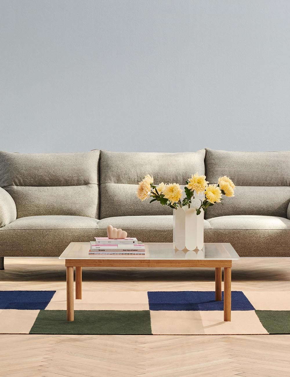 Flat Works, criado por Ethan Cook para HAY, é inspirado em tapeçarias de parede clássicas, resultando em uma série de tapetes de cores vibrantes.