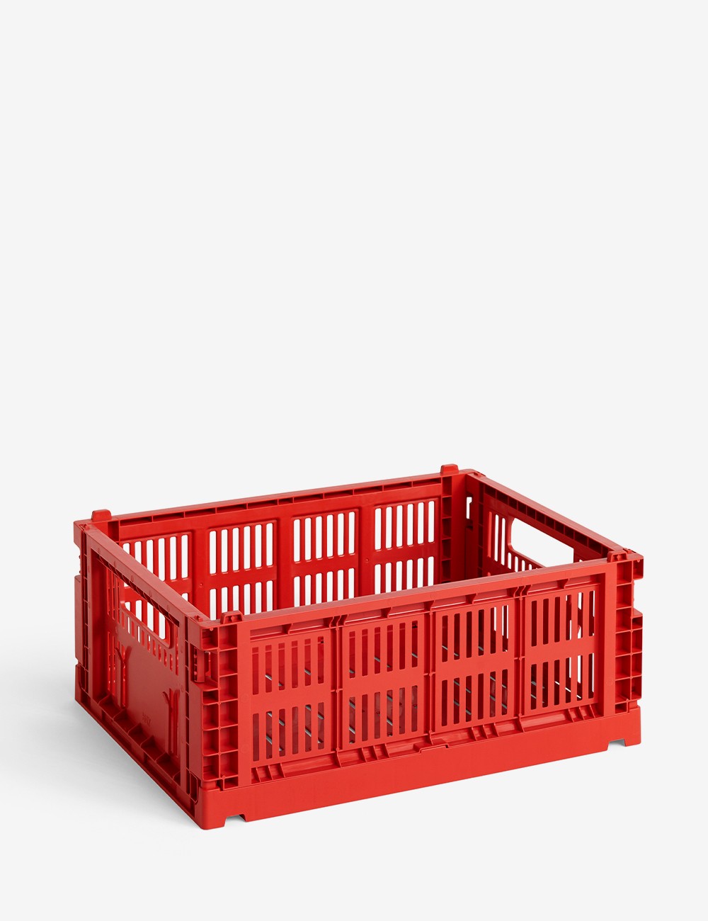 HAY Colour Crate é uma série de caixas de armazenamento coloridas com design perfurado, que também são dobráveis ​​e empilháveis.