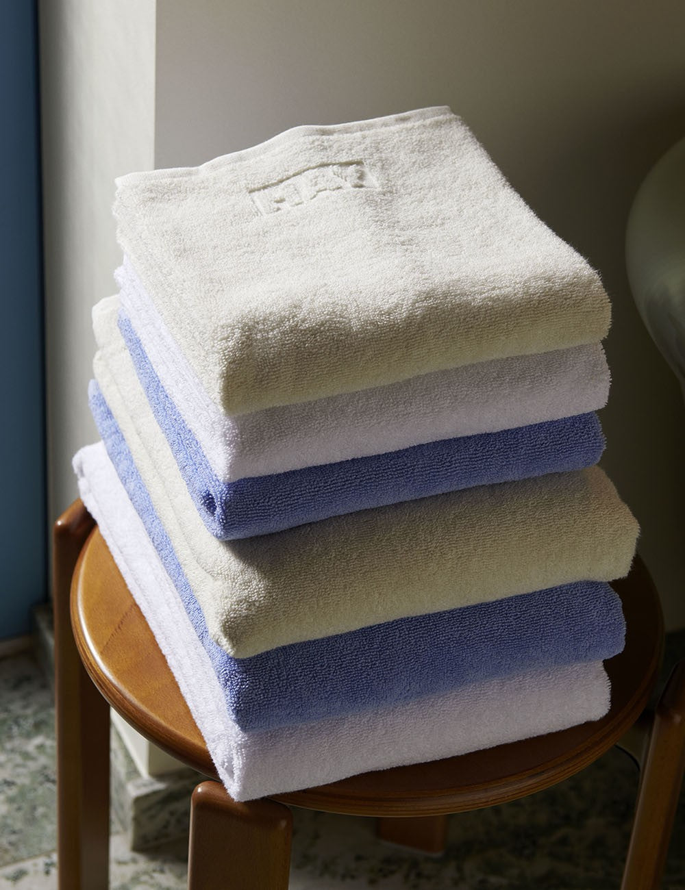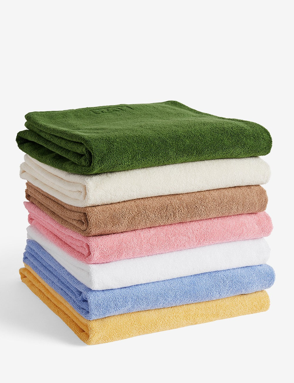 Feita de algodão OEKO-TEX durável com uma textura macia e frotté, a série Mono é uma linha de toalhas de banho com um design clássico e atemporal com o logotipo HAY.