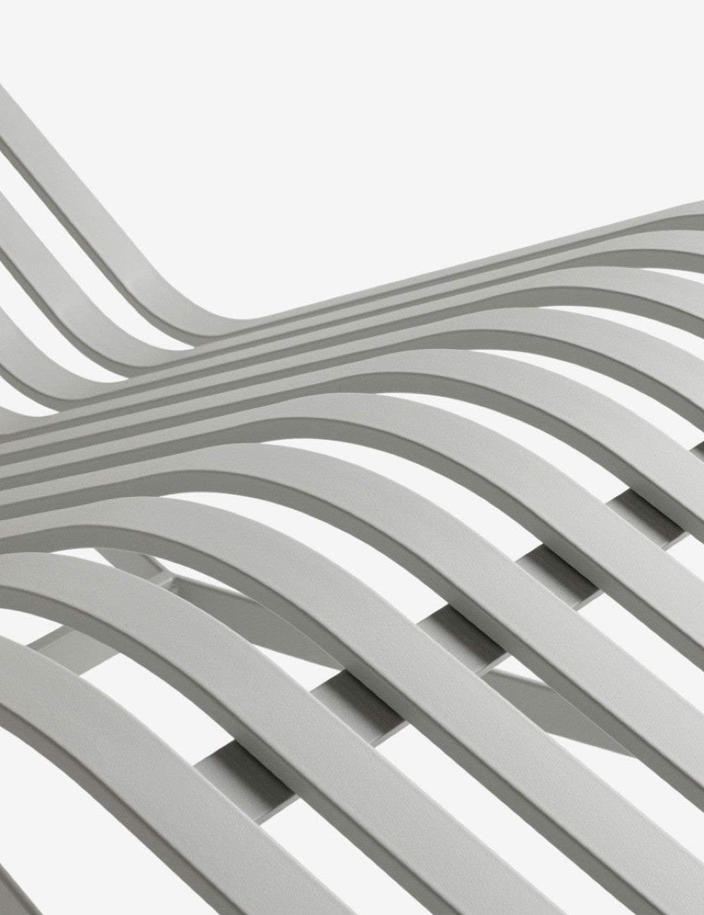 O desenho geométrico simples torna os elementos que compõem a coleção Palissade visualmente leves e se integram sem esforço em todos os tipos de ambientes ao ar livre, seja uma paisagem natural ou um ambiente urbano.