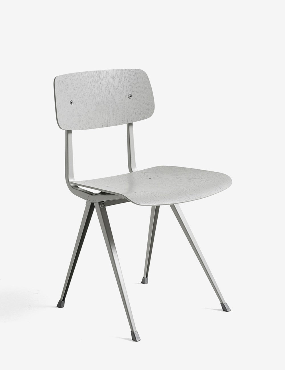 A cadeira Result possui uma base de chapa de aço fina com assento e encosto em carvalho, que mantém a máxima flexibilidade, leveza e resistência, mantendo o design minimalista. Originalmente uma cadeira popular em escolas nos anos 50, a estética e a durabilidade limpas do Result significam que ela pode ser usada em muitos contextos públicos e privados. Disponível em uma variedade de acabamentos em madeira e cores básicas que podem ser combinadas com a mesa Pyramid.