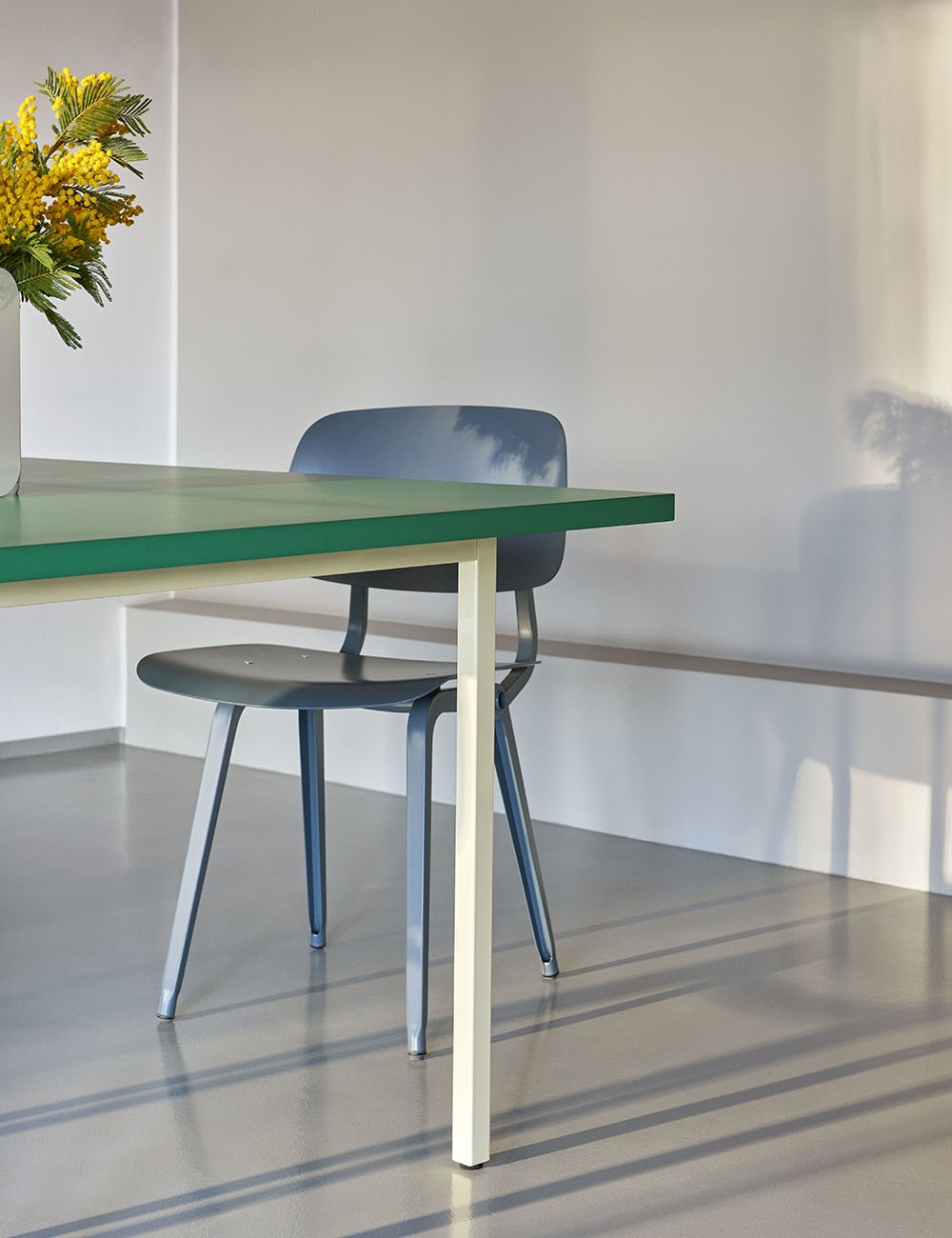 O design simples, mas eficaz, é composto por uma base de aço lacado com ótima resistência e estabilidade, enquanto a superfície é feita de Valchromat.