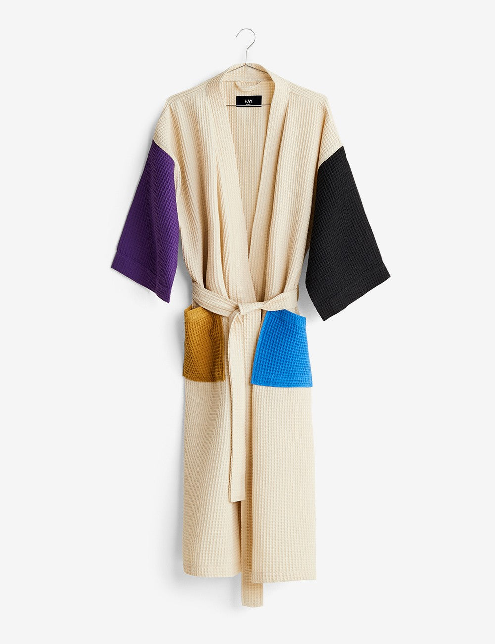 O roupão Waffle da HAY combina design multicolorido contemporâneo com conforto excepcional.