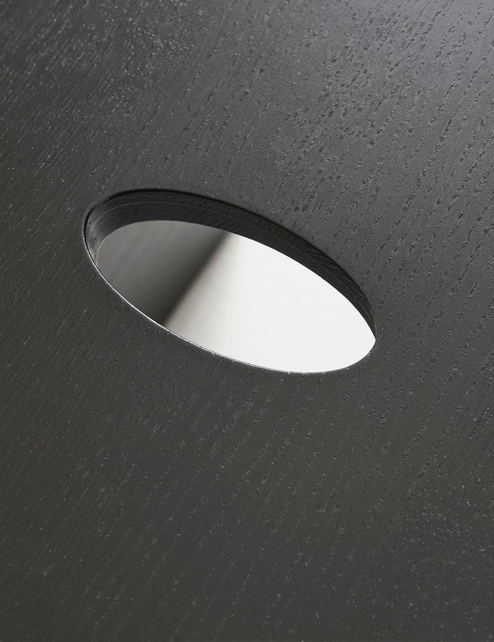 Fabricada em carvalho maciço e com atenção aos detalhes nas proporções e acabamentos, a sua construção tipo puzzle e as juntas sem solução de continuidade despertam a curiosidade e conferem um visual distinto.