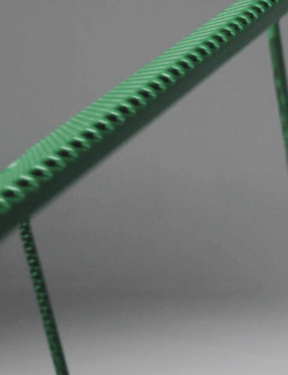 Feita de arame metálico fino, a expressão industrial da cadeira e a sua construção em aço de alta precisão fazem dela um excelente exemplo do movimento de alta tecnologia da década de 1970.