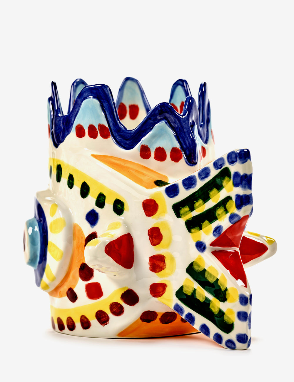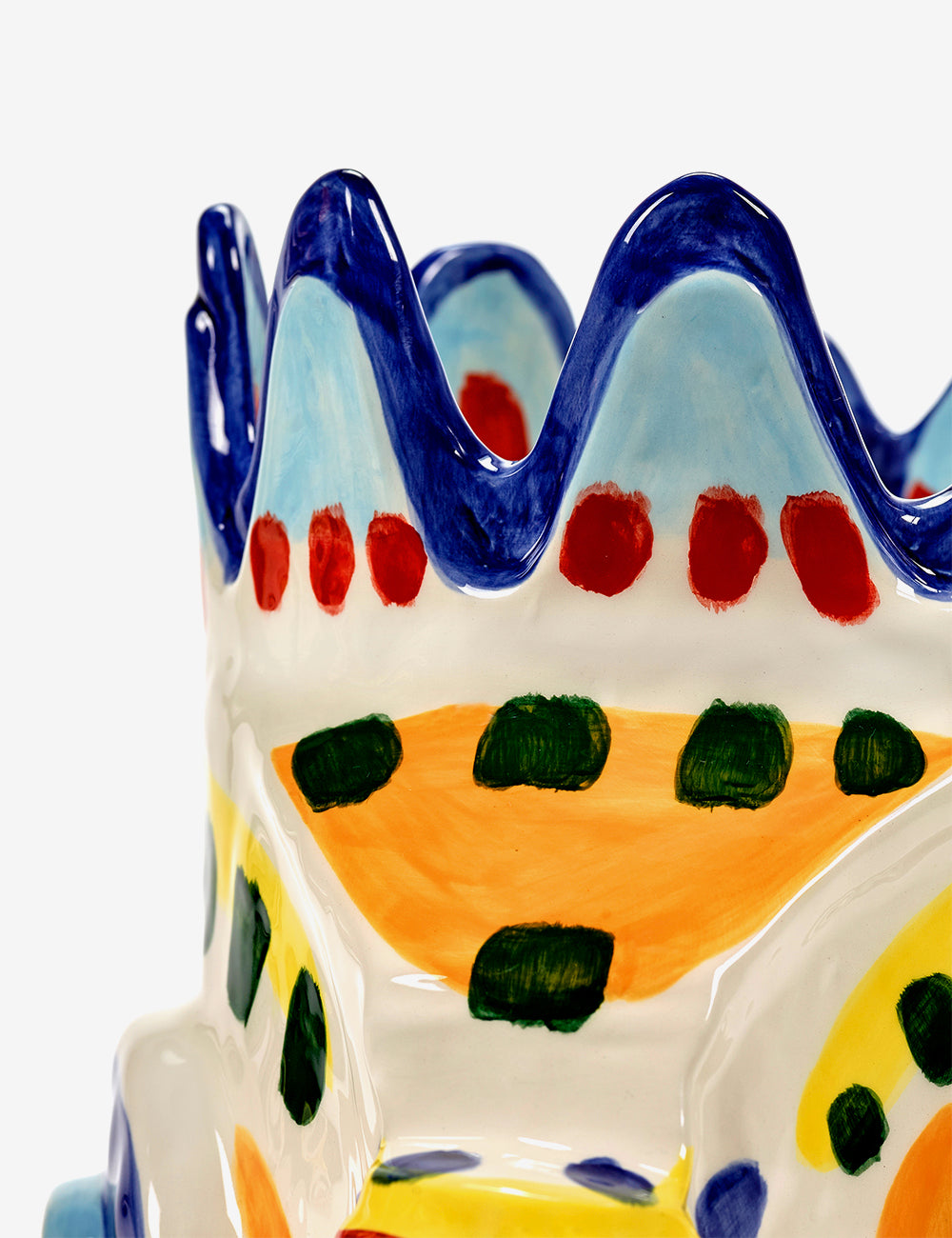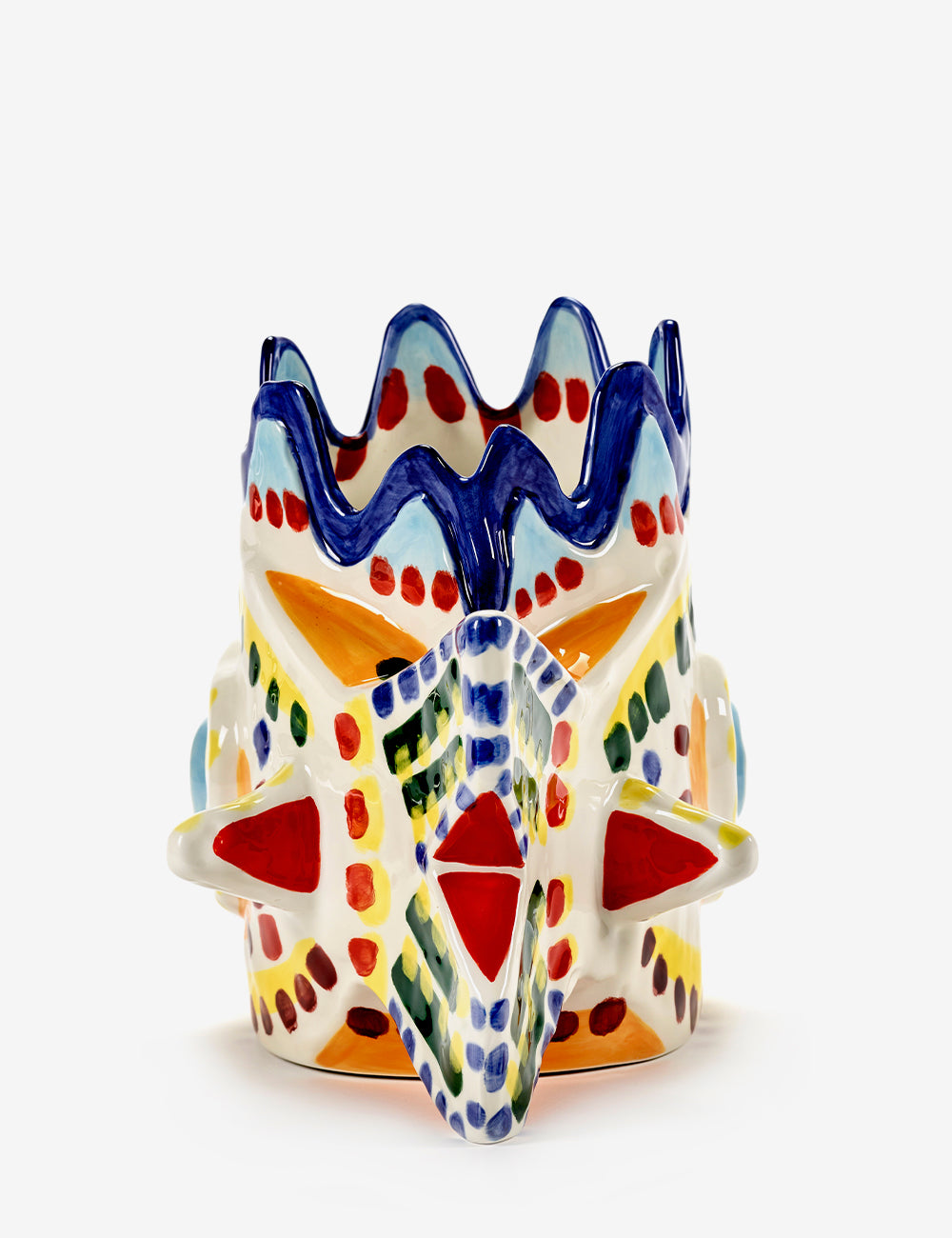 The creative collaboration between renowned British-Israeli chef Yotam Ottolenghi and his friend, artist Ivo Bisignano, has resulted in four exuberant hand-painted ceramic vases. With the Sicily vase collection, both creators bring inspiration from the table to the outdoors. ‘In Sicily, where I grew up, people eat in the kitchen while enjoying the view of colorful balconies filled with flowers,’ says Ivo Bisignano. Sicily reflects Ottolenghi's exuberant culinary style and, at the same time, pays homage to the sun, colors, and passion of Bisignano's homeland. These vases are decorative objects and are not guaranteed to be completely waterproof.