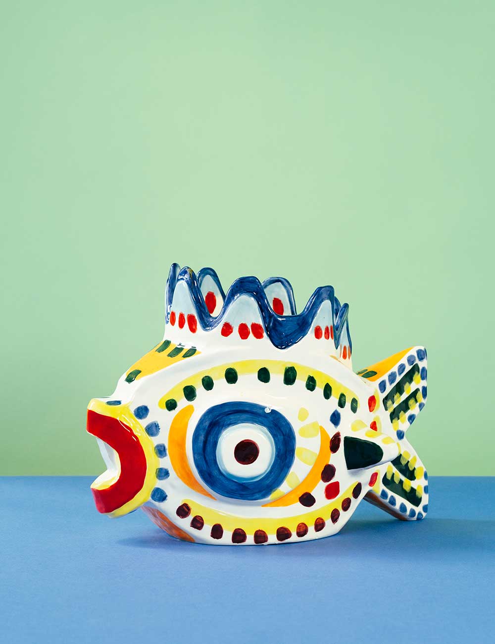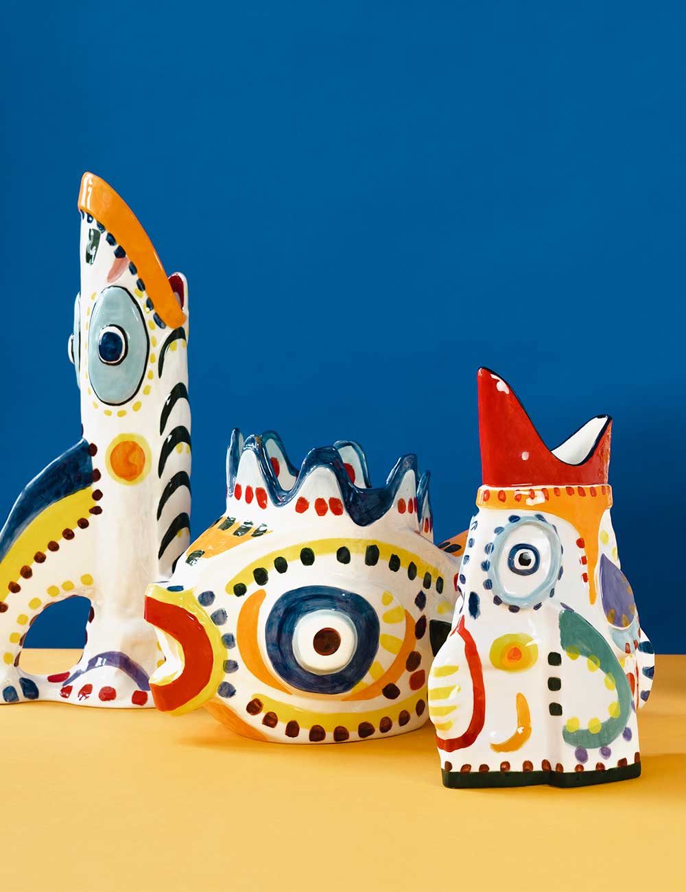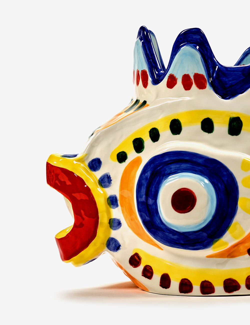 The creative collaboration between renowned British-Israeli chef Yotam Ottolenghi and his friend, artist Ivo Bisignano, has resulted in four exuberant hand-painted ceramic vases. With the Sicily vase collection, both creators bring inspiration from the table to the outdoors. ‘In Sicily, where I grew up, people eat in the kitchen while enjoying the view of colorful balconies filled with flowers,’ says Ivo Bisignano. Sicily reflects Ottolenghi's exuberant culinary style and, at the same time, pays homage to the sun, colors, and passion of Bisignano's homeland. These vases are decorative objects and are not guaranteed to be completely waterproof.