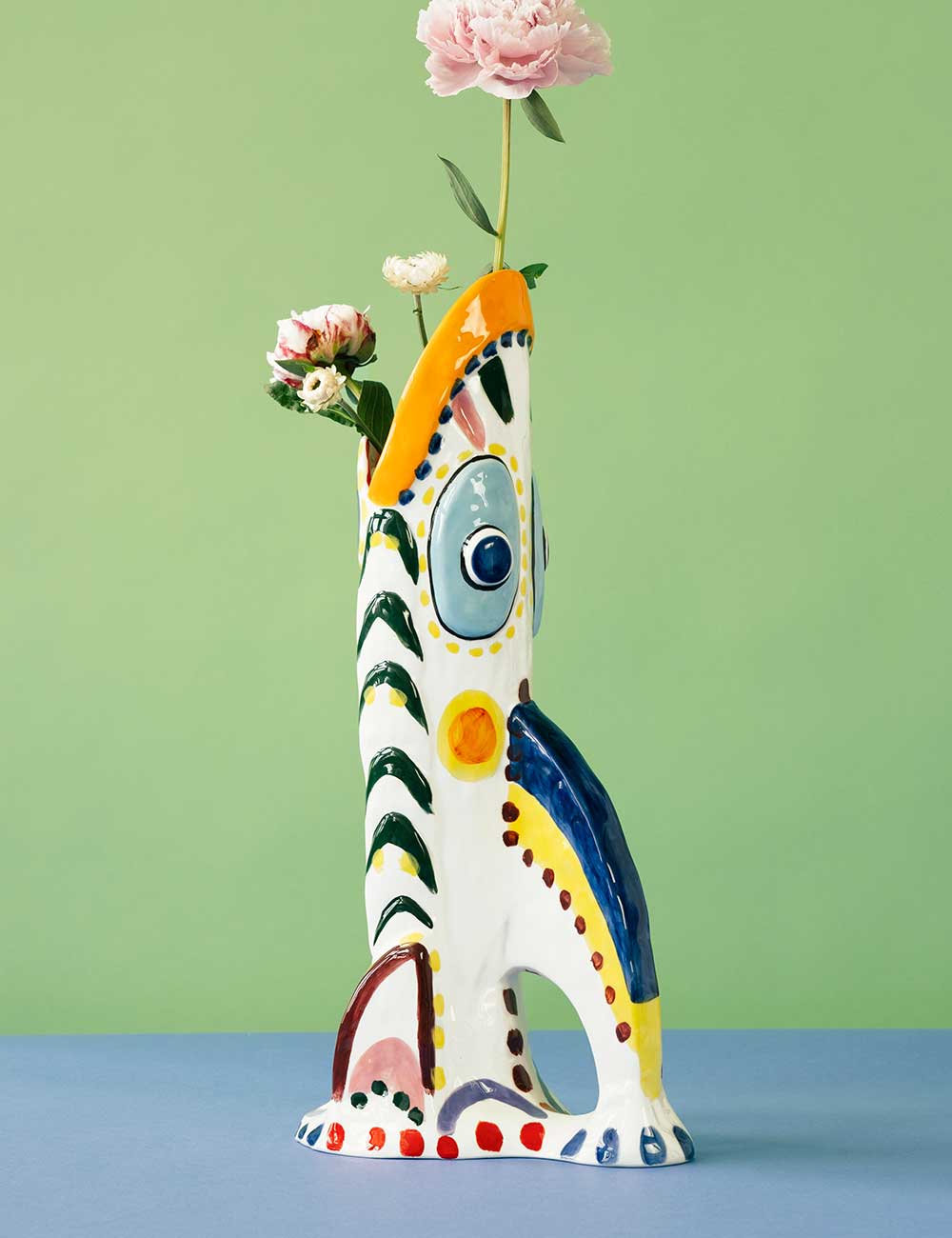 The creative collaboration between renowned British-Israeli chef Yotam Ottolenghi and his friend, artist Ivo Bisignano, has resulted in four exuberant hand-painted ceramic vases. With the Sicily vase collection, both creators bring inspiration from the table to the outdoors. ‘In Sicily, where I grew up, people eat in the kitchen while enjoying the view of colorful balconies filled with flowers,’ says Ivo Bisignano. Sicily reflects Ottolenghi's exuberant culinary style and, at the same time, pays homage to the sun, colors, and passion of Bisignano's homeland. These vases are decorative objects and are not guaranteed to be completely waterproof.