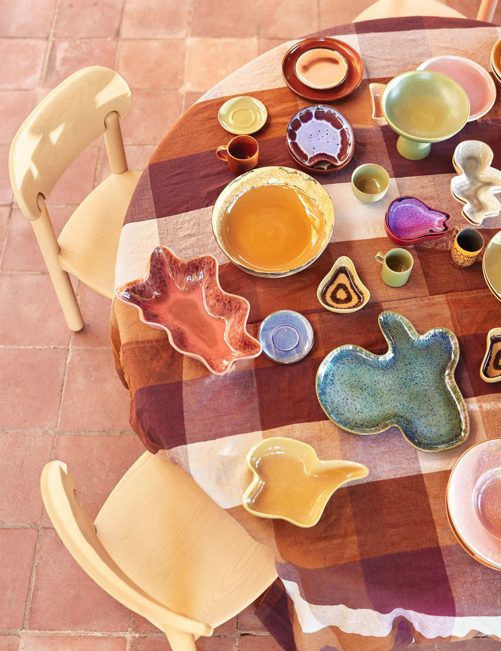 Shell da hkliving é uma série de taças, pratos e utensílios feitos de cerâmica vidrada.