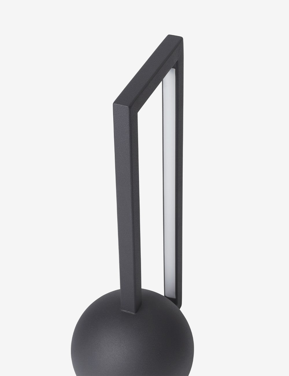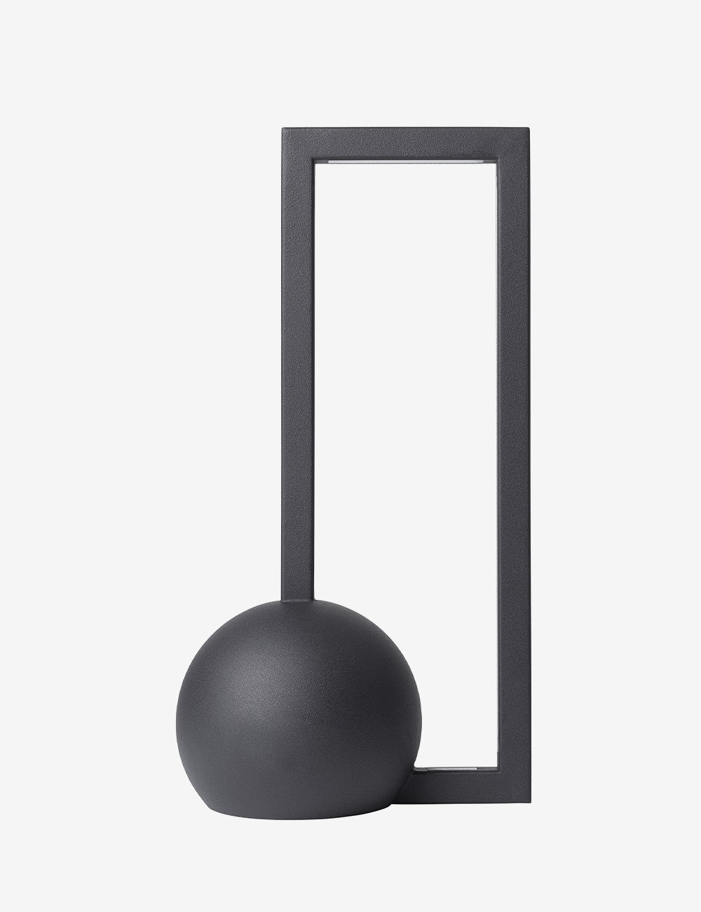 O candeeiro Dot é feito de aço revestido com acabamento fosco e inclui uma lâmpada LED de 27K integrada na moldura retangular de sua estrutura que fornece luz ambiente em um tom branco quente.