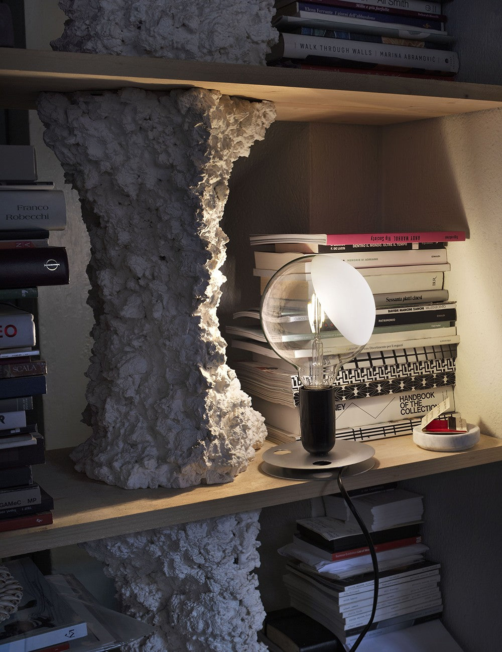 Desenhada por Achille Castiglioni em 1972 para a FLOS, a Lampadina é um pequeno candeeiro de mesa com estética industrial, cujo nome reflete a simplicidade lúdica do seu design: «lampadina» significa «lâmpada» em italiano.