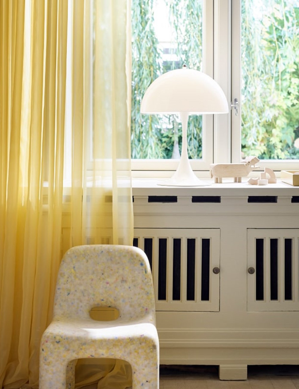 Panton combinou essa ideia com as formas orgânicas tão características de suas criações, resultando em uma luz ambiente sem brilho.
