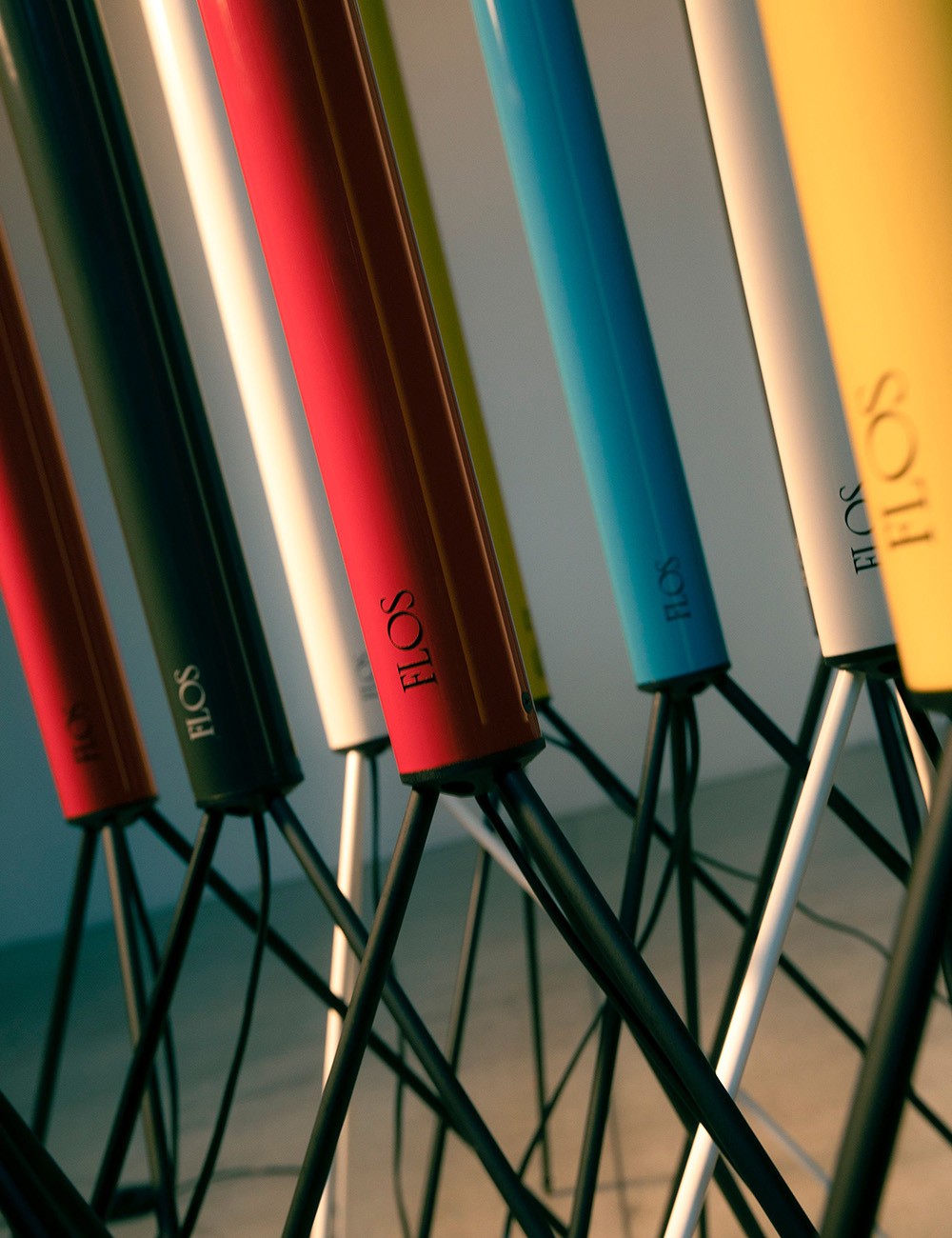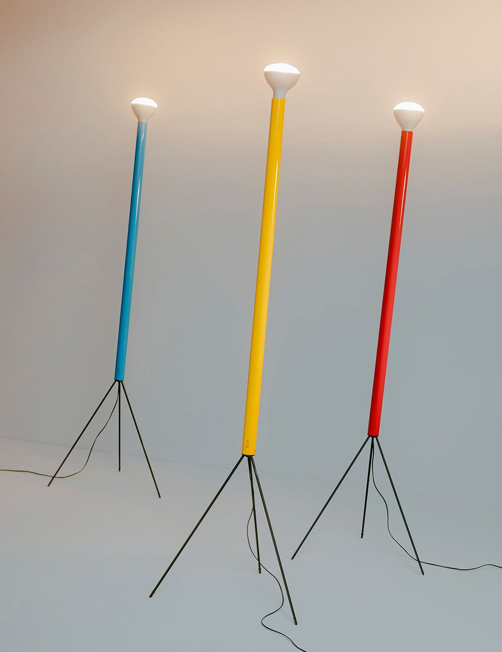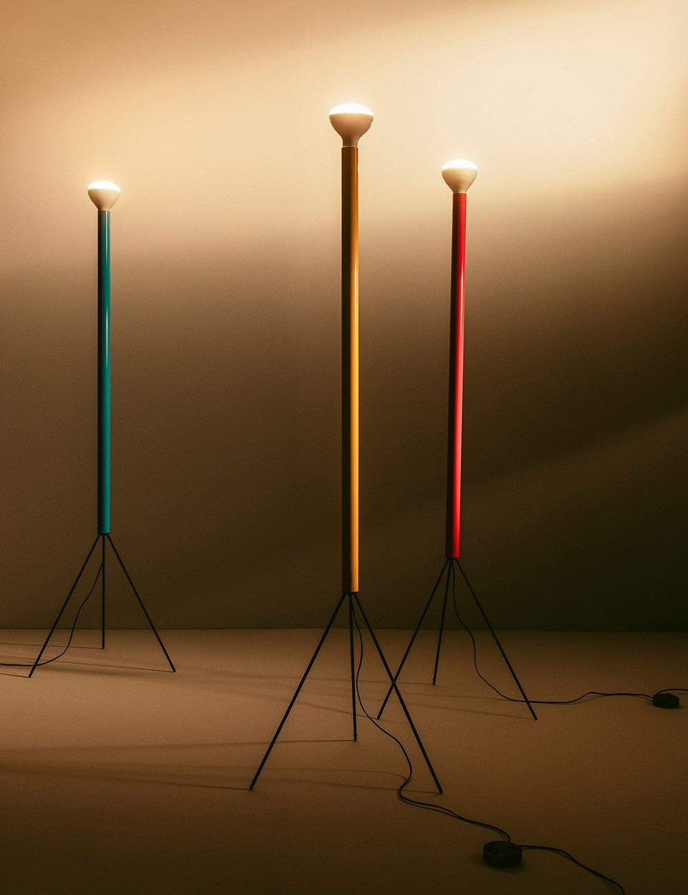 O Luminator foi projetado em 1954 pelos irmãos Castiglioni para a Flos.