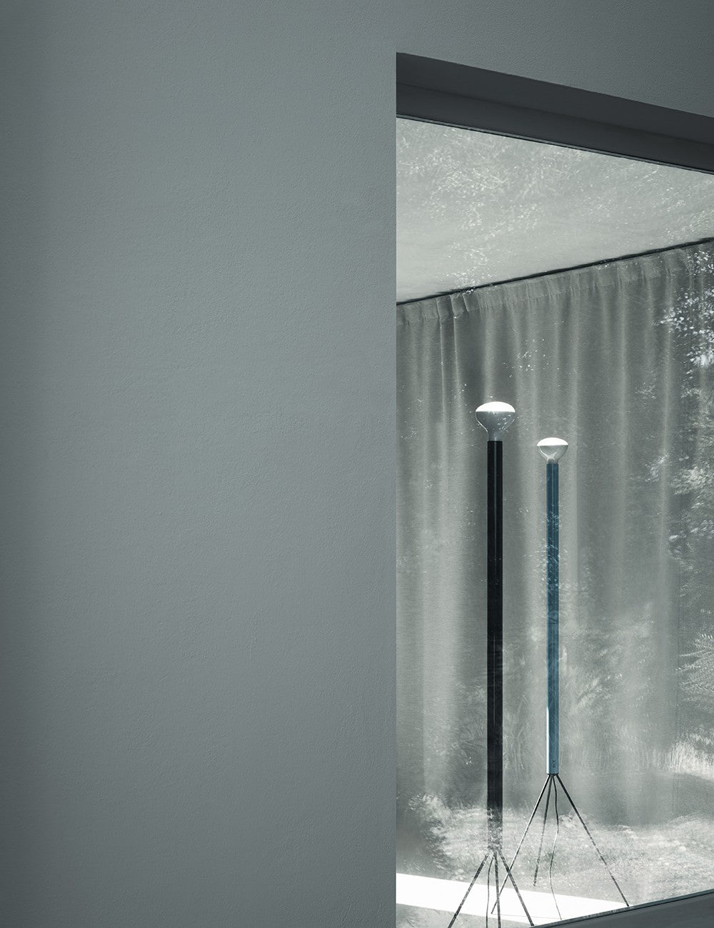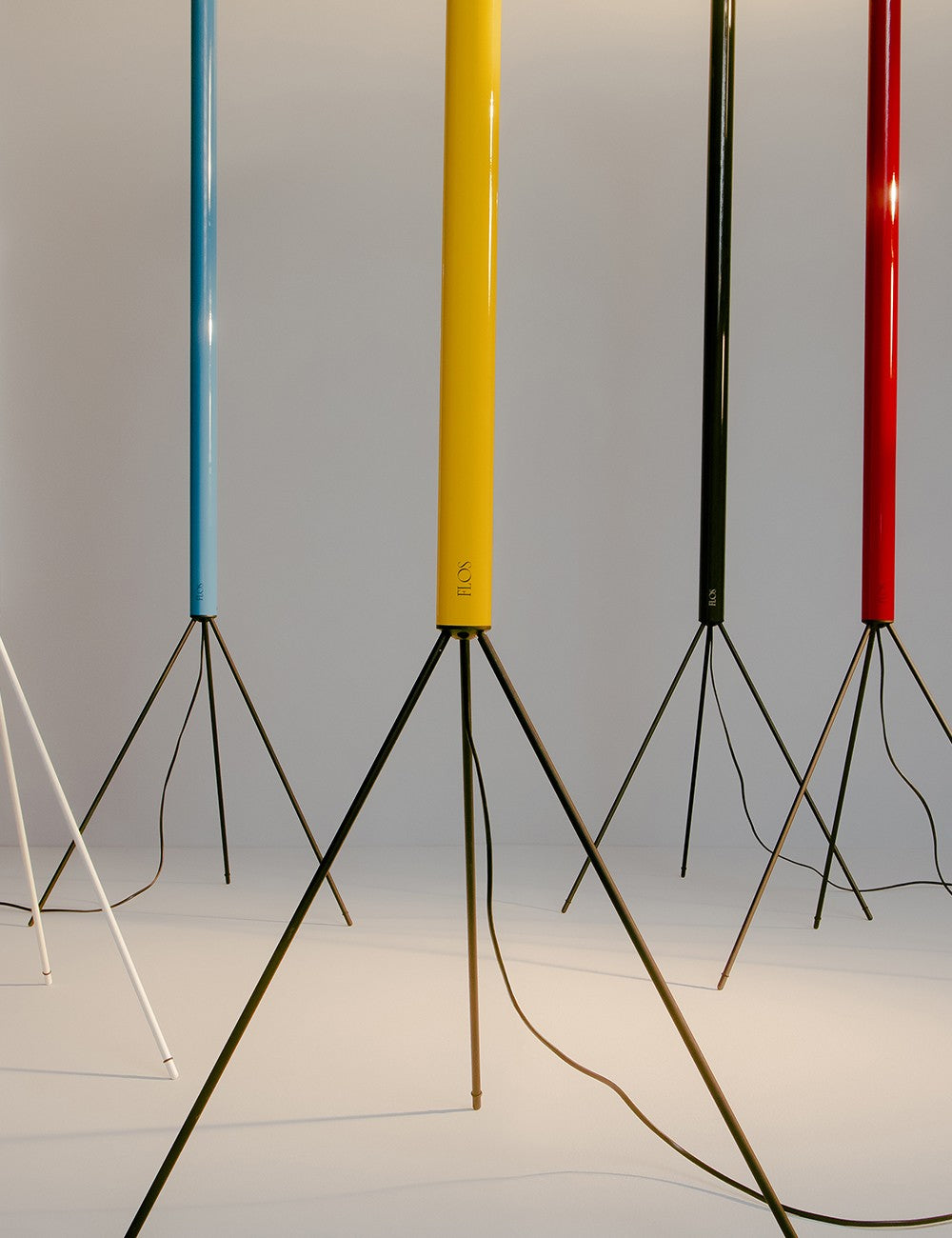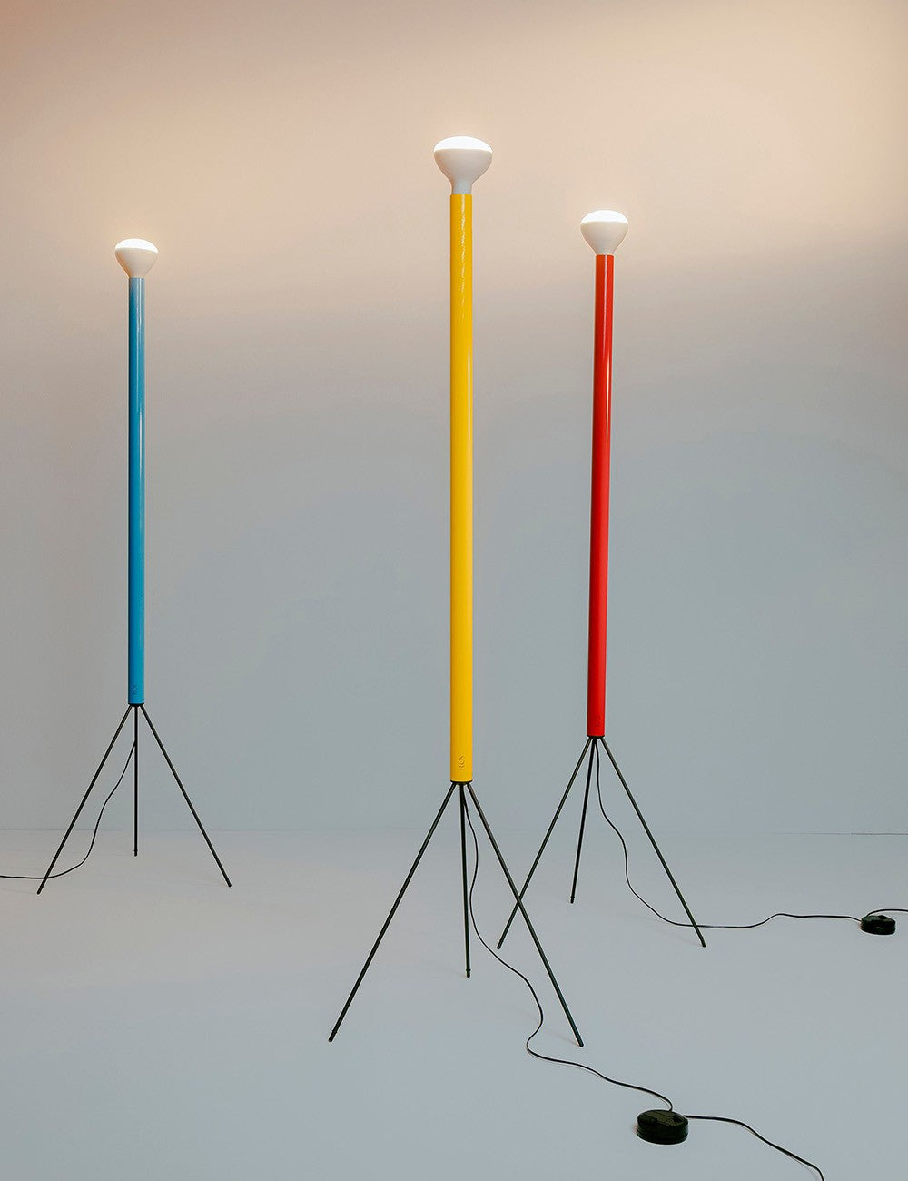 O Luminator foi projetado em 1954 pelos irmãos Castiglioni para a Flos.