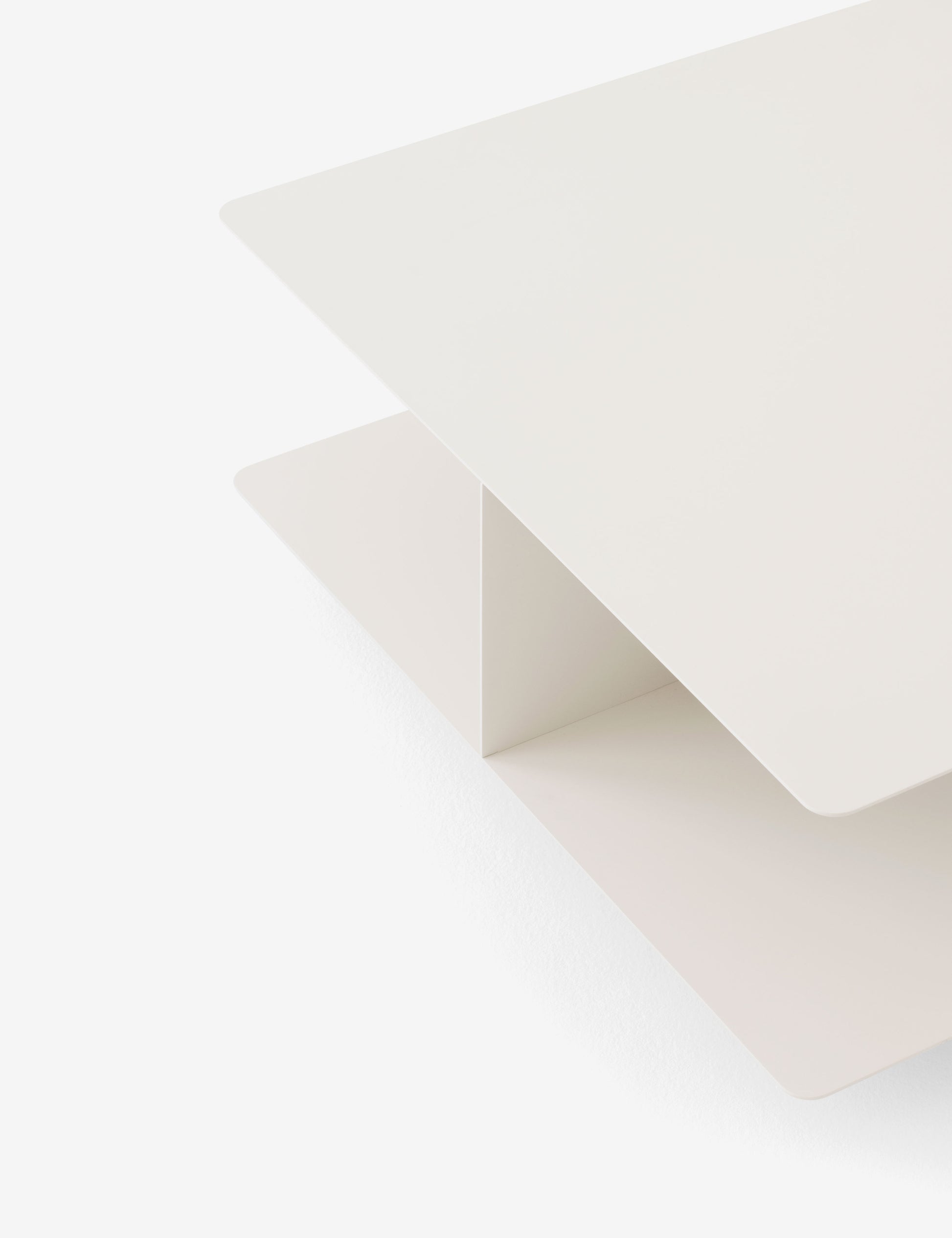 Fabricada inteiramente em aço com revestimento em pó, a mesa destaca-se pelo seu design simples e resistente, adaptando-se facilmente a diferentes estilos de interior. O seu processo de produção combina o corte a laser da chapa de aço e a conformação da base para obter linhas precisas e uma presença elegante.