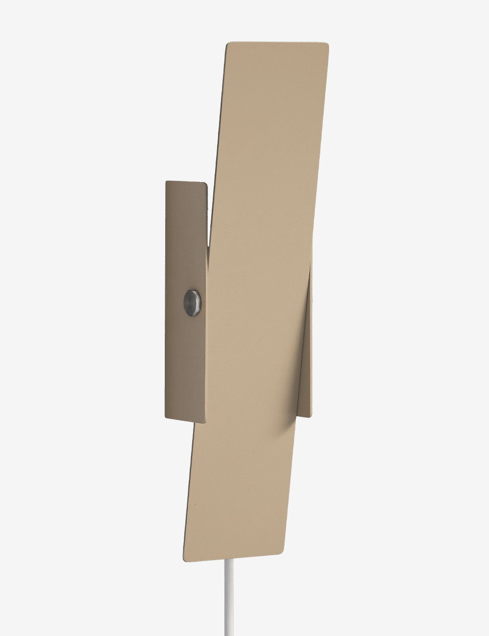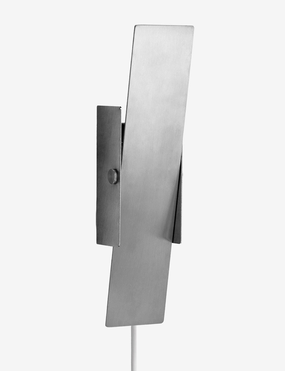 É composto por quatro lâminas de aço: três são dobradas em forma de U interligado e fixadas no centro, enquanto a quarta atua como um defletor de luz no topo, permitindo um controle dinâmico da direção da luz.