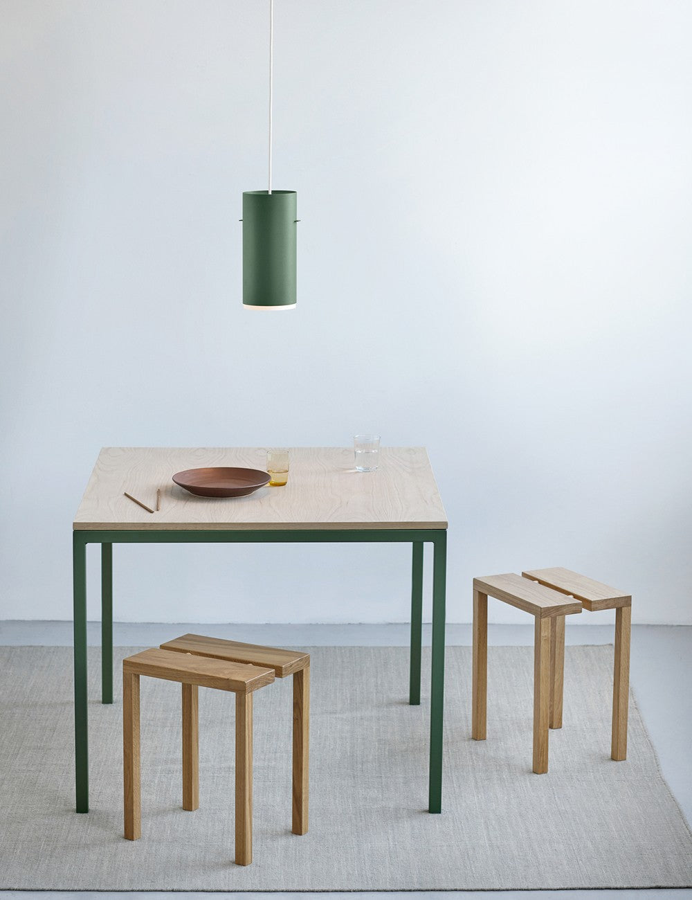 O Moebe's Tube Pendant é feito de um tubo sólido de alumínio envolto com um simples pedaço de papel translúcido.