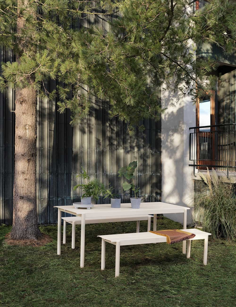 Linear Steel consiste numa série de bancos, mesas e cadeiras que combinam perfeitamente entre si, resultando numa variedade de combinações.