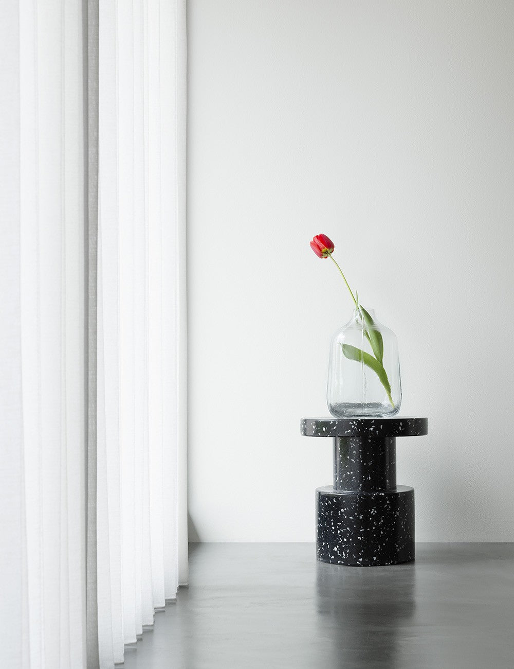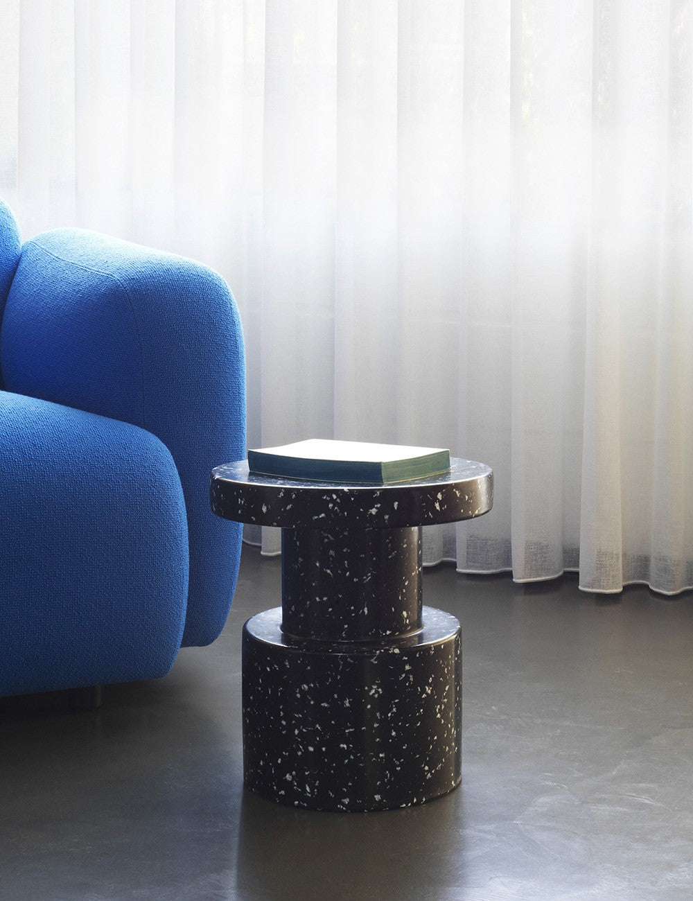 Bit é um banco multifuncional, design de Simon Legald para a Normann Copenhagen, projetado para ser usado como assento ou mesa lateral.