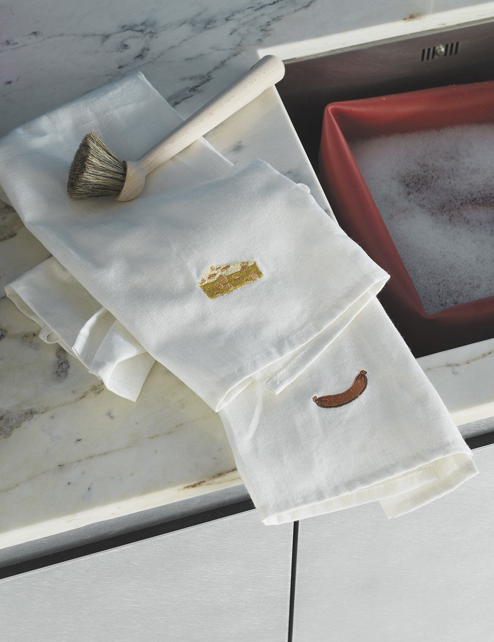 Feito em uma rica mistura de linho e algodão, e com um bordado divertido, os panos Yummy animam qualquer cozinha.