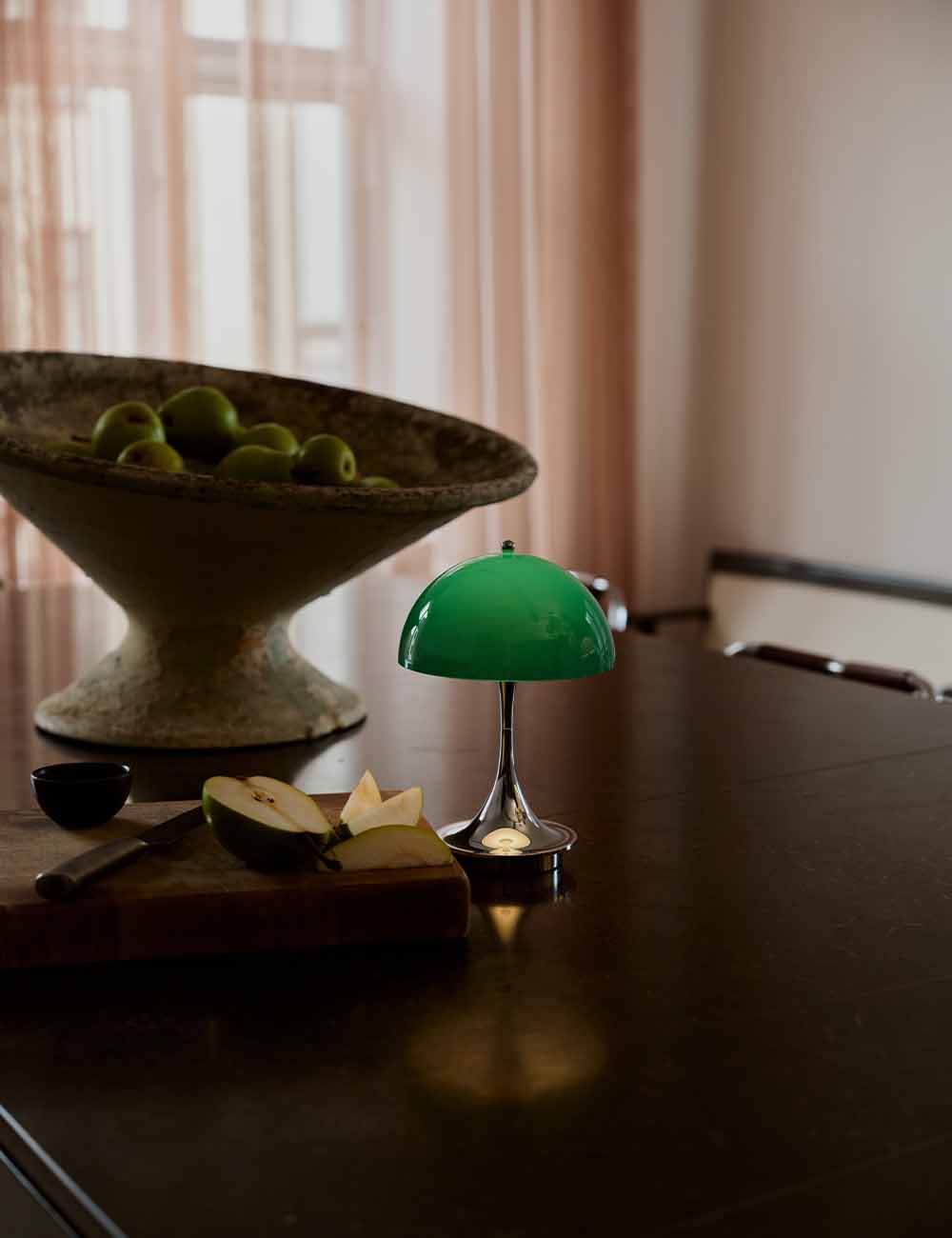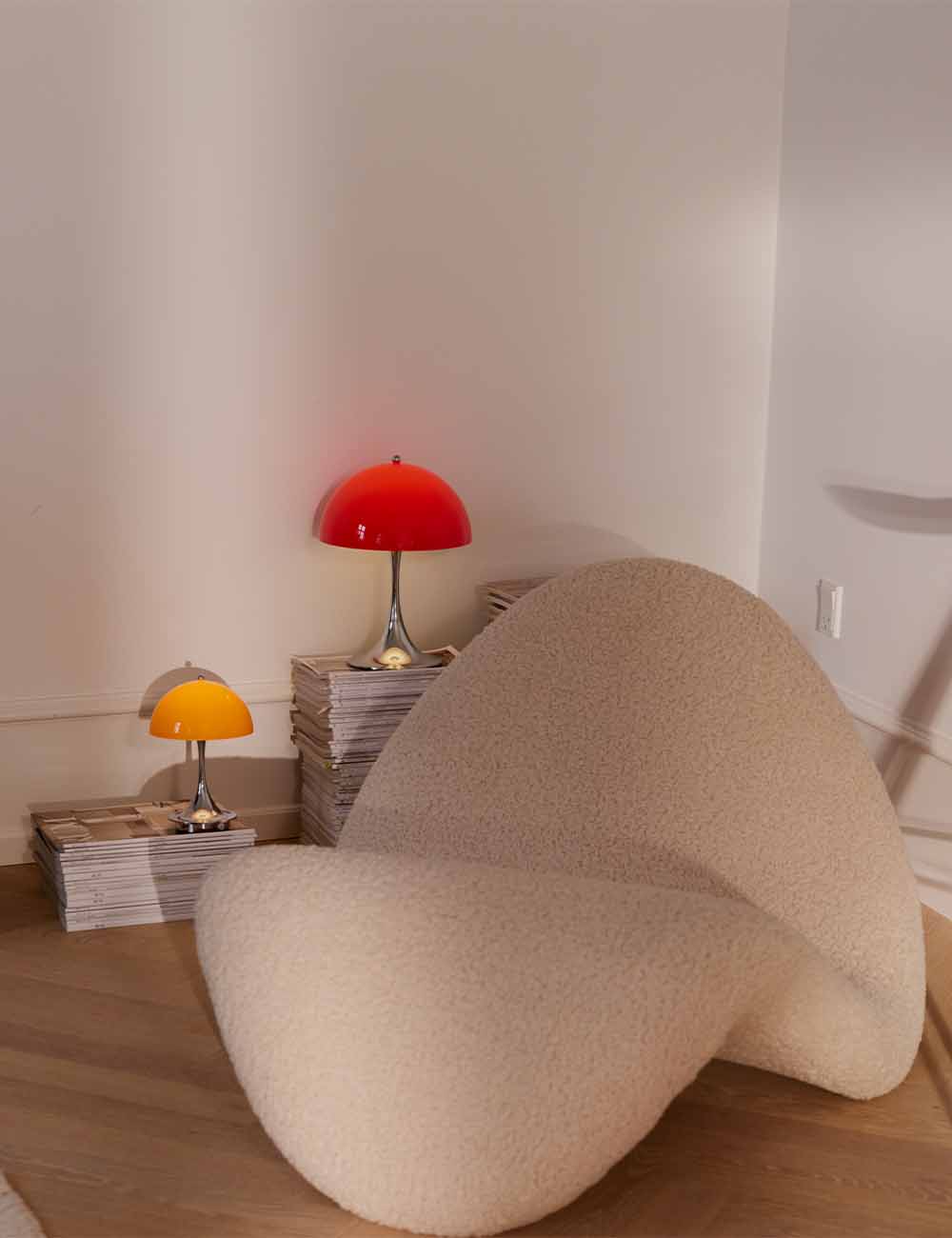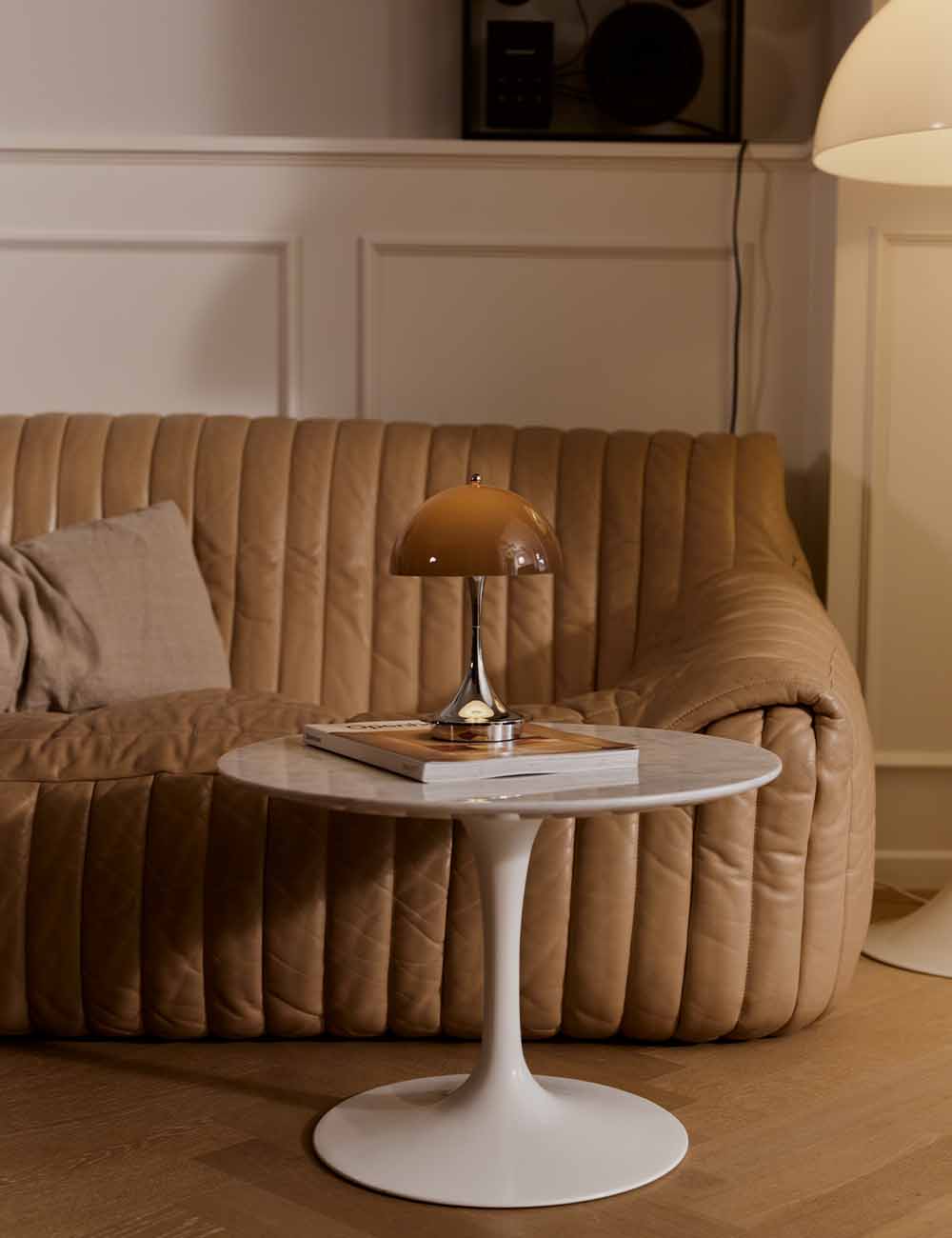 Desenhada por Verner Panton em 1971 em colaboração com Louis Poulsen, Panthella é um ícone que procura que tanto o pé como o ecrã funcionem como refletores para criar uma luz ambiente sem encandeamento.