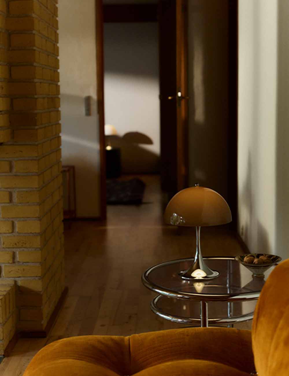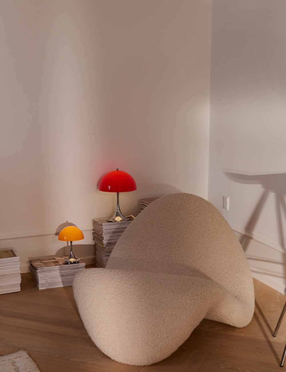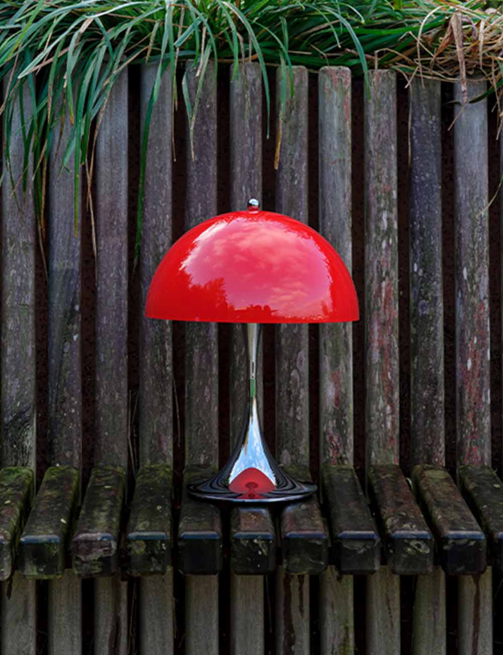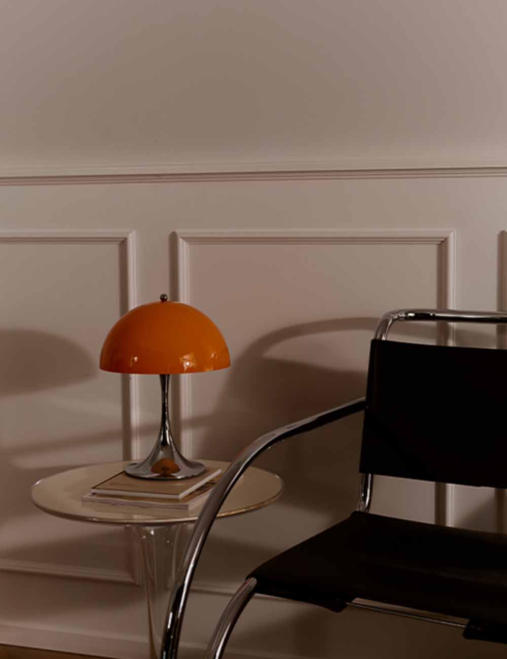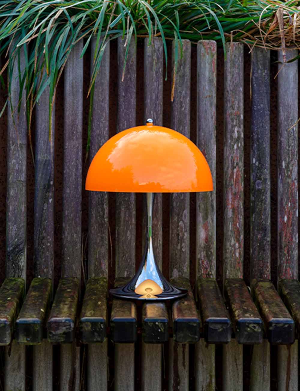 A versão portátil Panthella 250 é uma edição reduzida do popular candeeiro de mesa, perfeita para colocar em peitoris, prateleiras ou mesas e proporcionar uma iluminação excecional em qualquer ambiente.