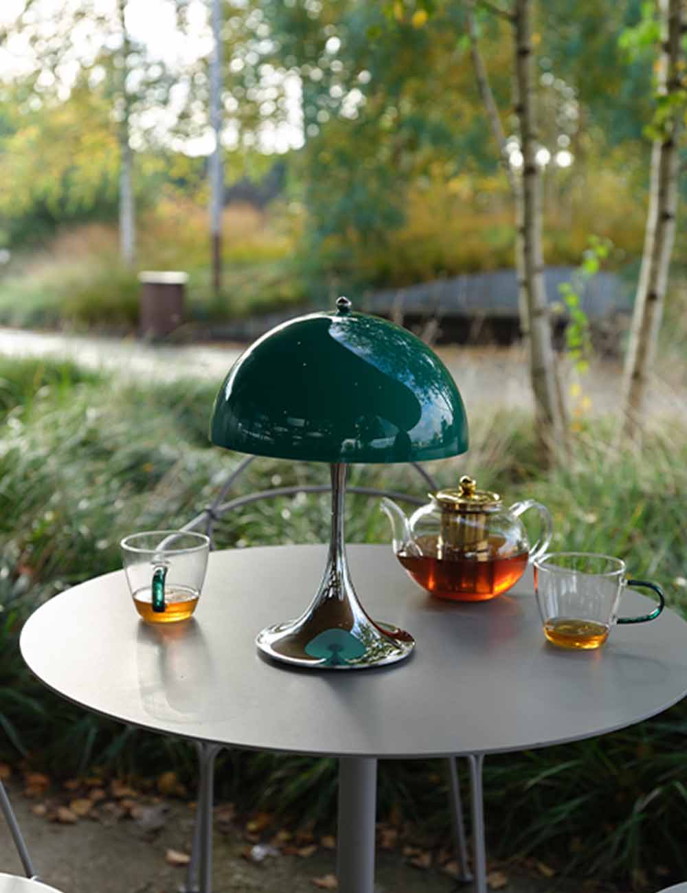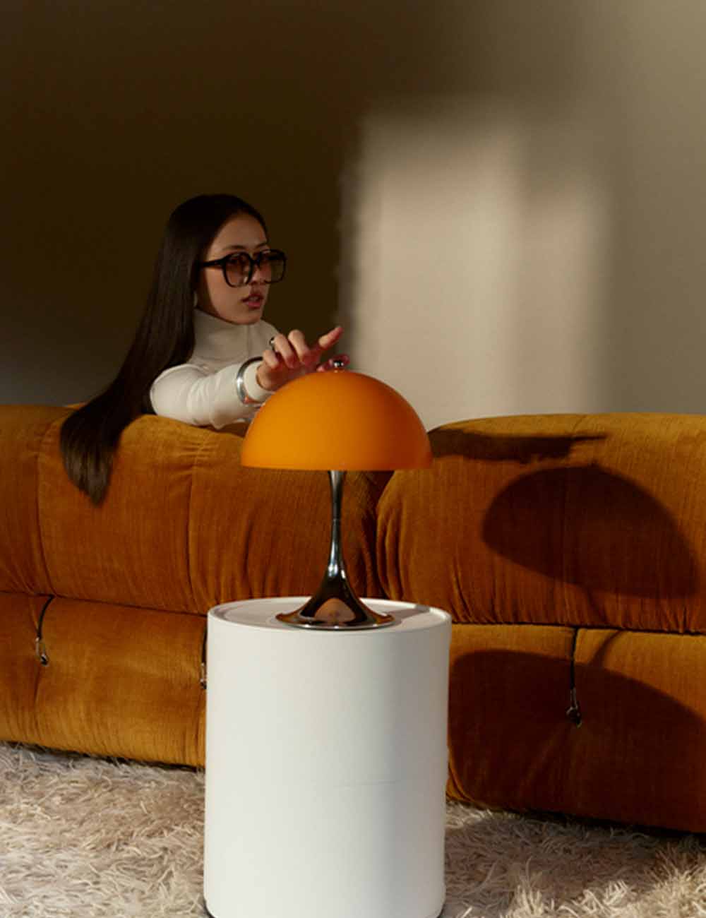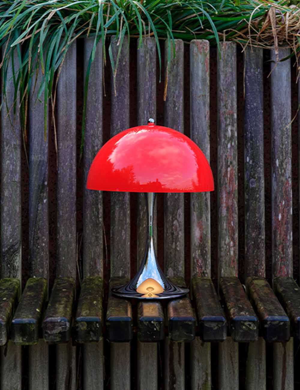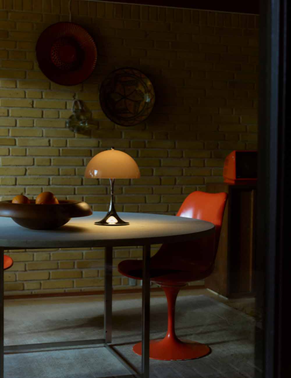 A versão portátil Panthella 250 é uma edição reduzida do popular candeeiro de mesa, perfeita para colocar em peitoris, prateleiras ou mesas e proporcionar uma iluminação excecional em qualquer ambiente.