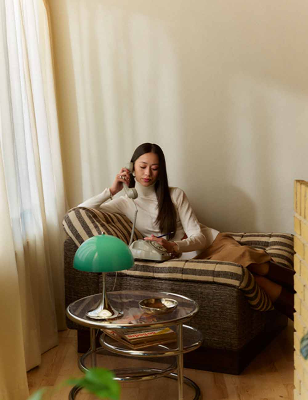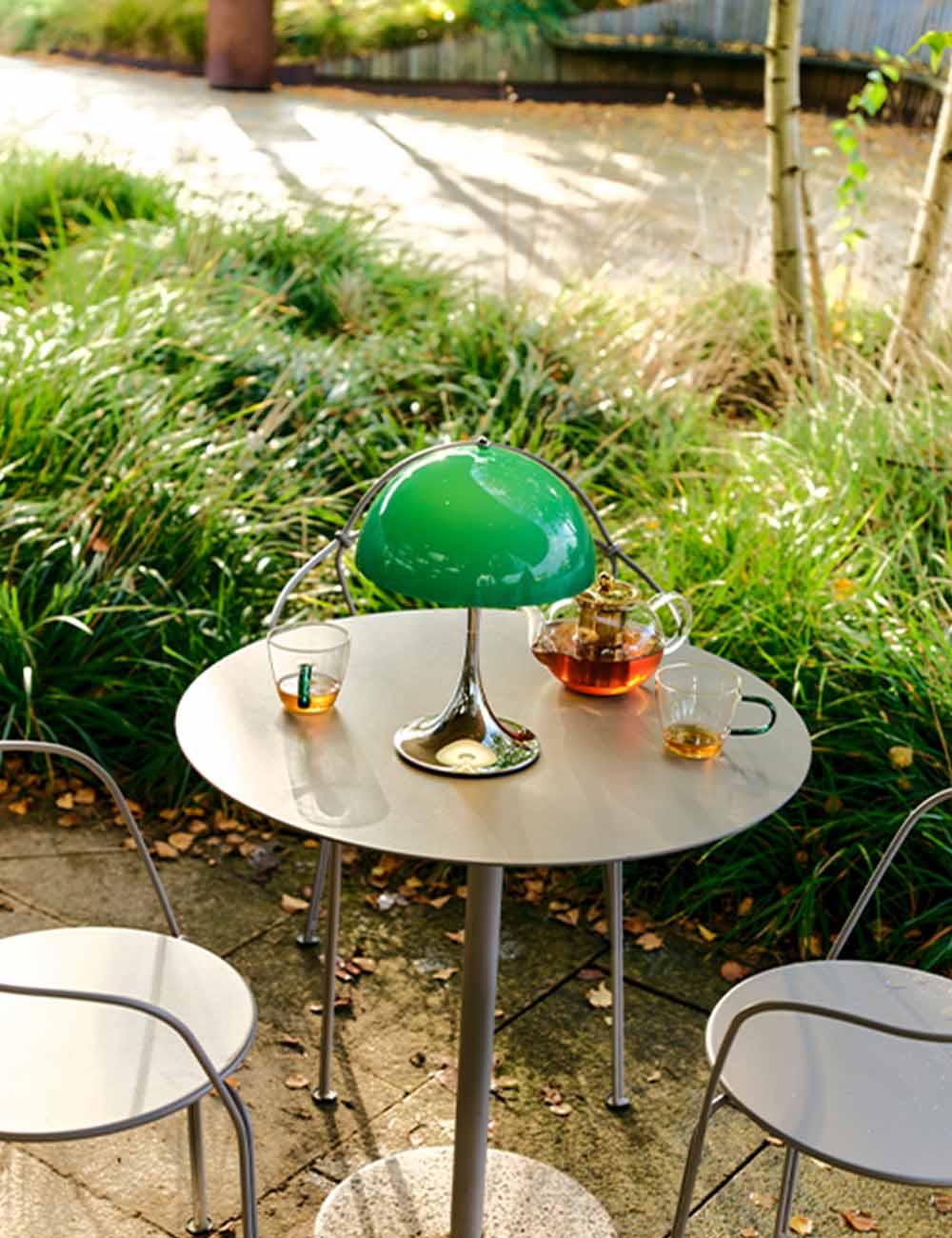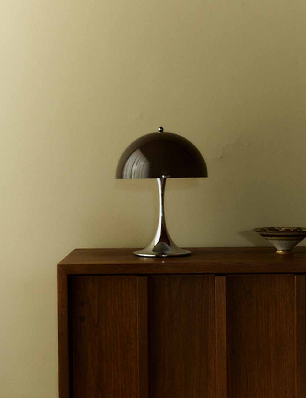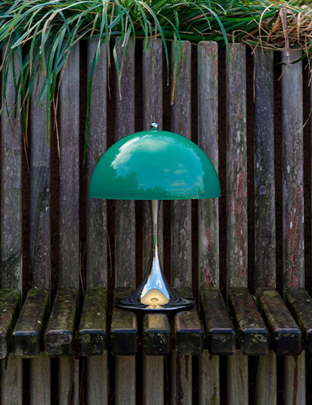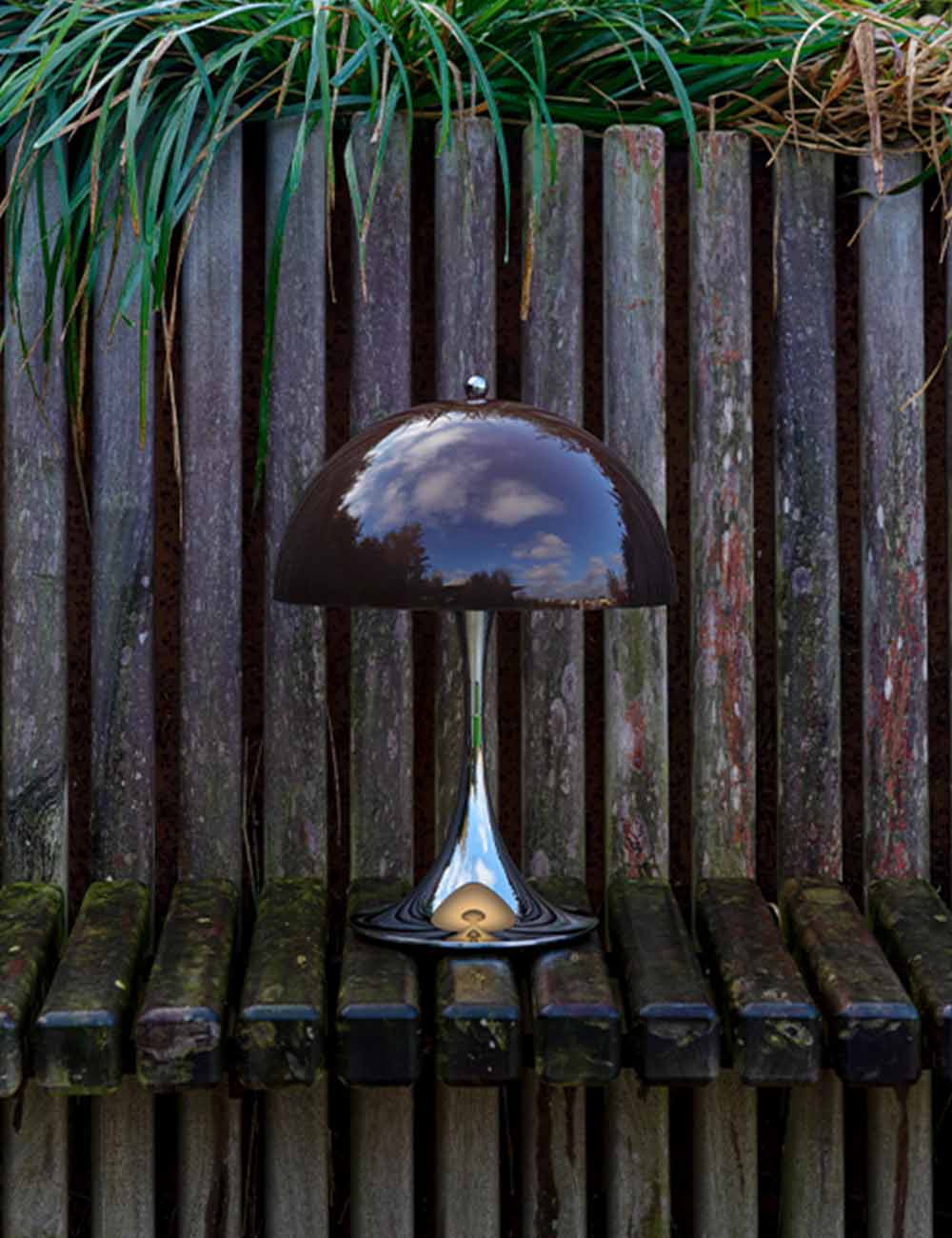 A versão portátil Panthella 250 é uma edição reduzida do popular candeeiro de mesa, perfeita para colocar em peitoris, prateleiras ou mesas e proporcionar uma iluminação excecional em qualquer ambiente.