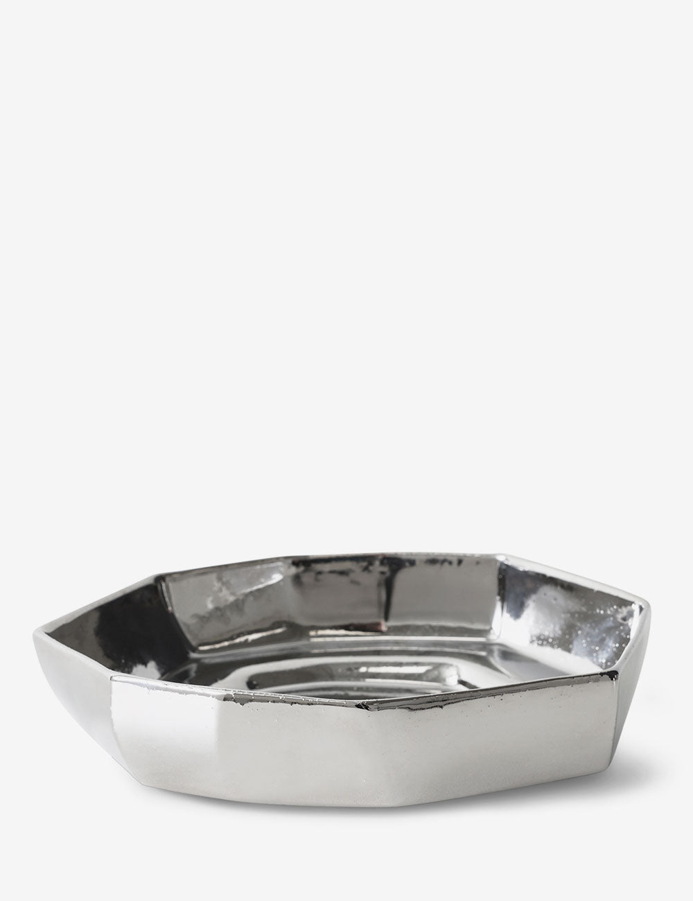 Esta taça de cerâmica destaca-se pela sua forma orgânica e irregular e pelo seu esmalte cromado chamativo.