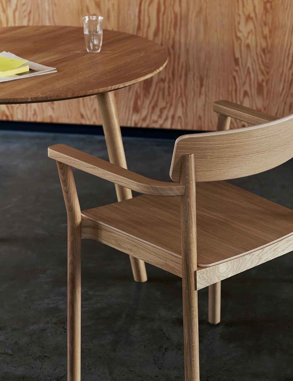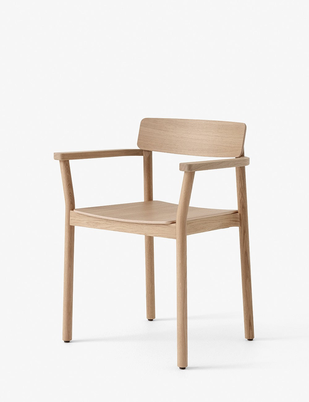 Desenhado por Thau & Kallio para a &Tradition, Betty é composto por uma série de cadeiras e bancos de madeira maciça com assentos alados em linho natural.