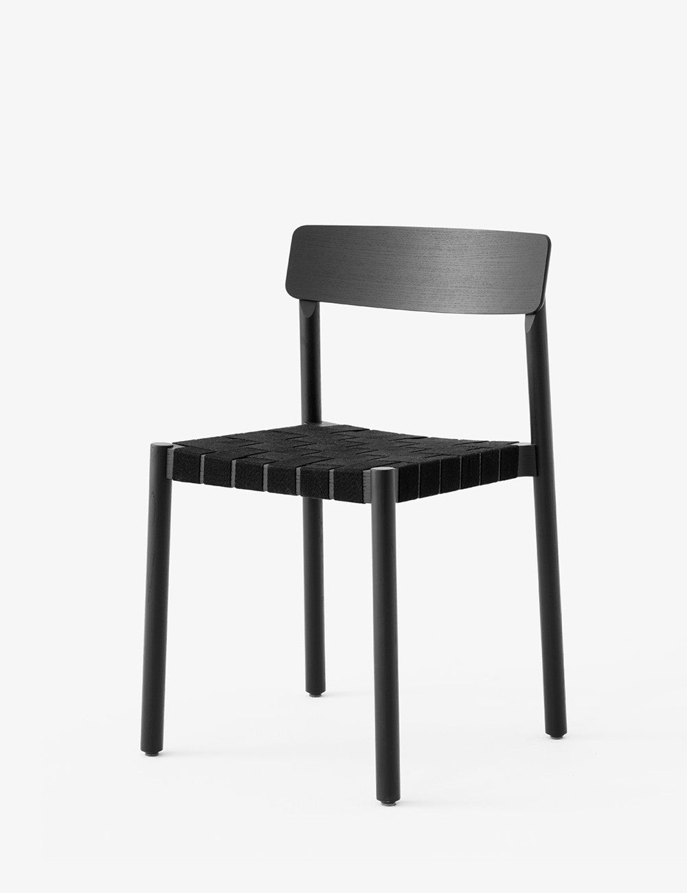 Desenhado por Thau & Kallio para a &Tradition, Betty é composto por uma série de cadeiras e bancos de madeira maciça com assentos alados em linho natural.