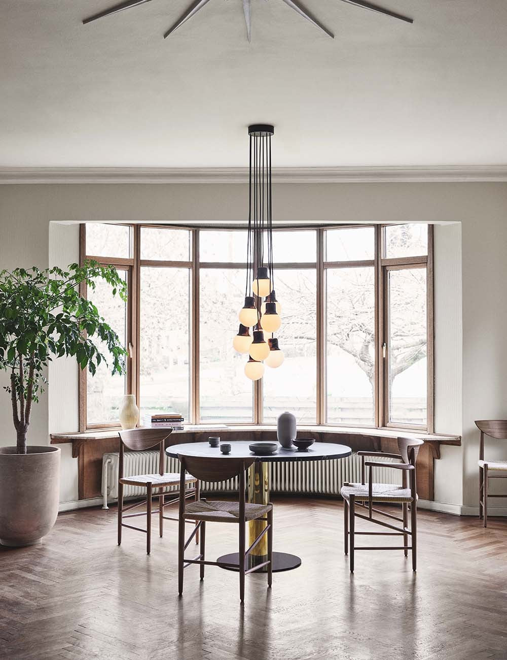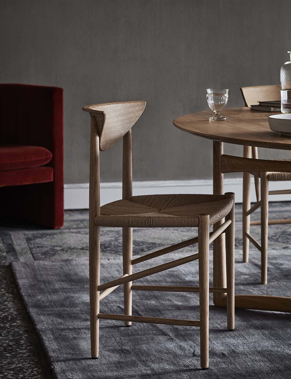 Projetada em 1956 por Hvidt & Mølgaard, Boomerang permanece como uma das obras-primas do design dinamarquês.