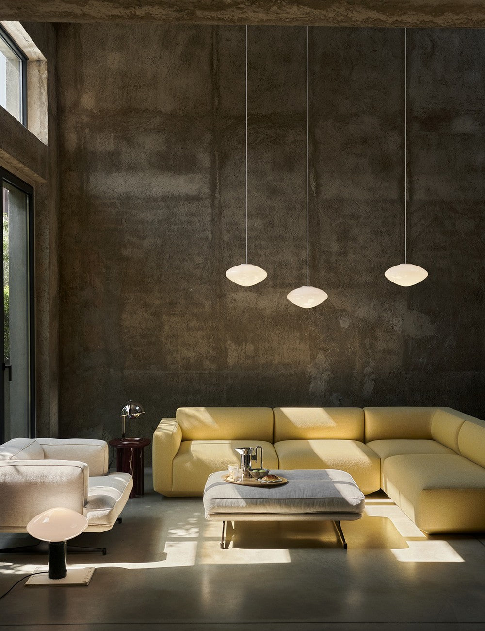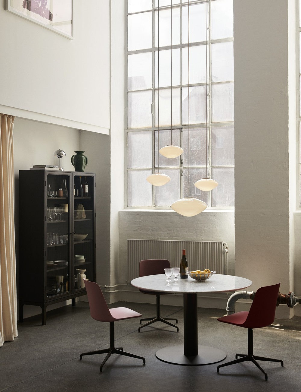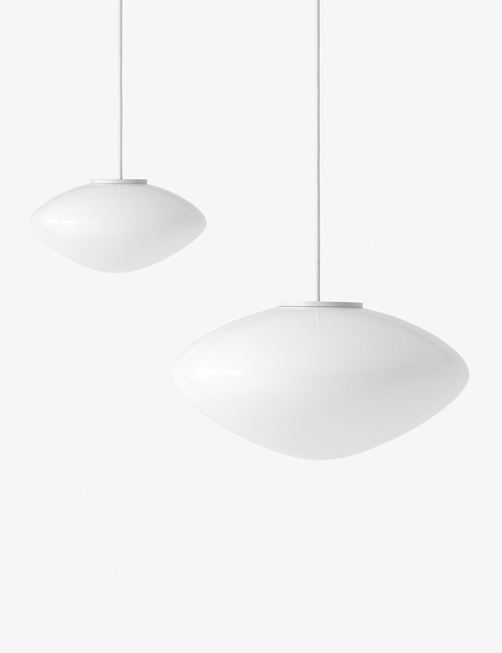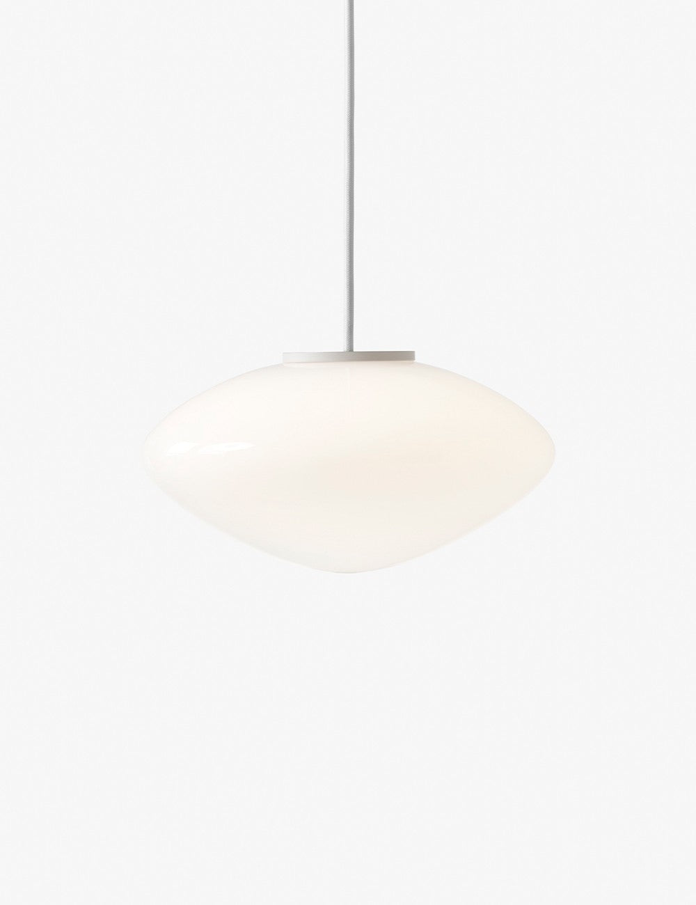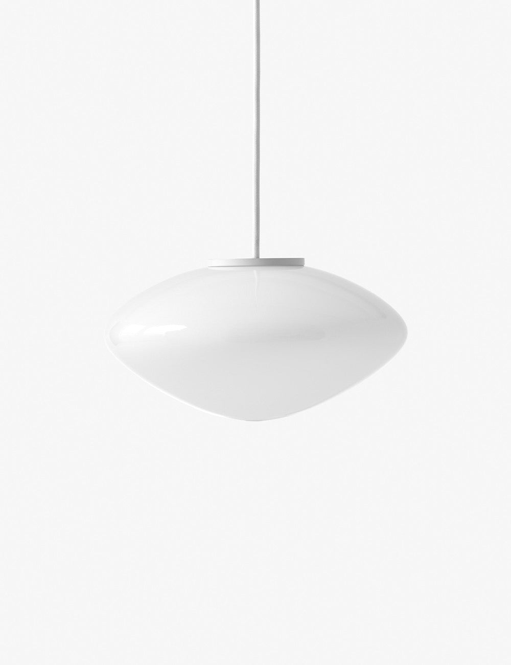 Mist é feita de vidro opalino soprado com detalhes em alumínio lacado branco.