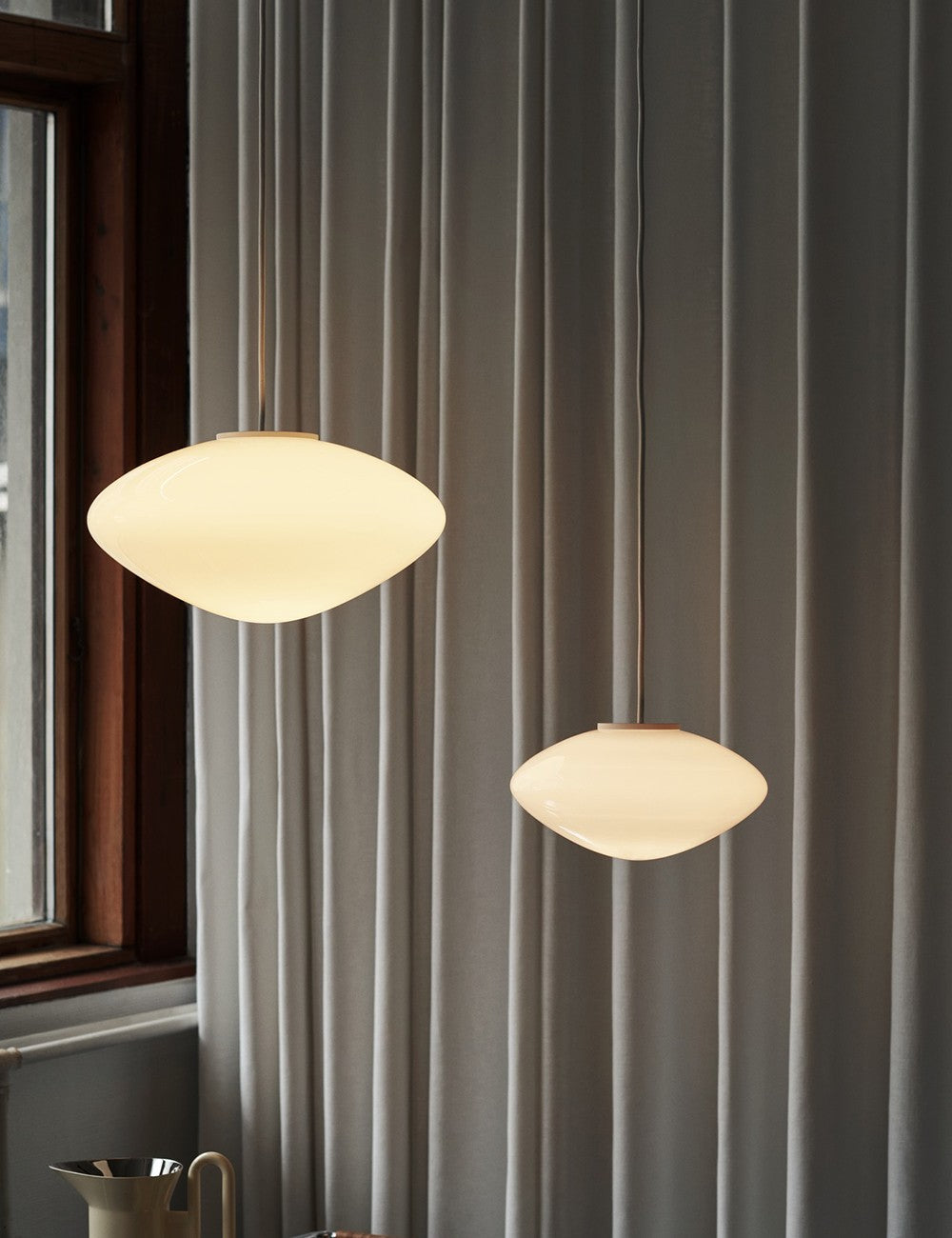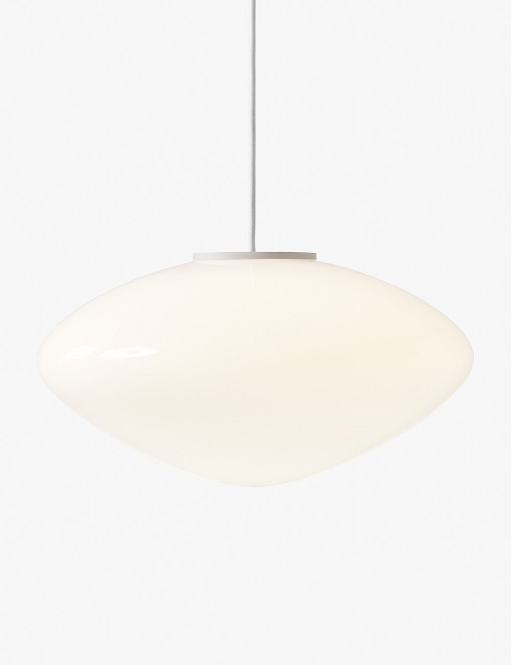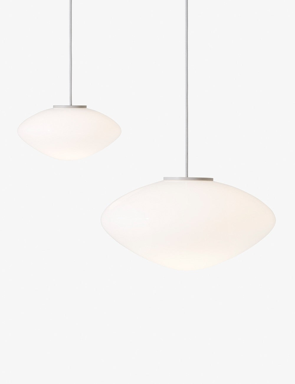 Mist é feita de vidro opalino soprado com detalhes em alumínio lacado branco.
