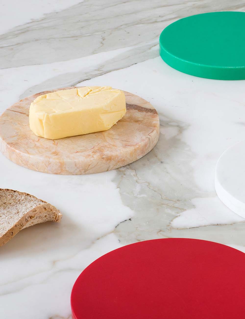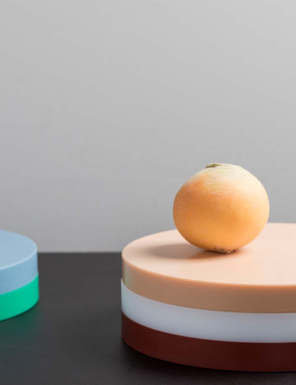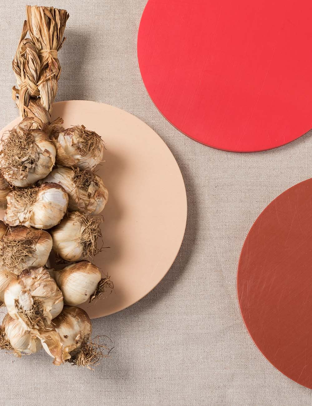 Muller Van Severen concebeu vários conjuntos de cinco objectos em forma de círculo, finamente afinados, para serem utilizados como tabuleiros de comida.