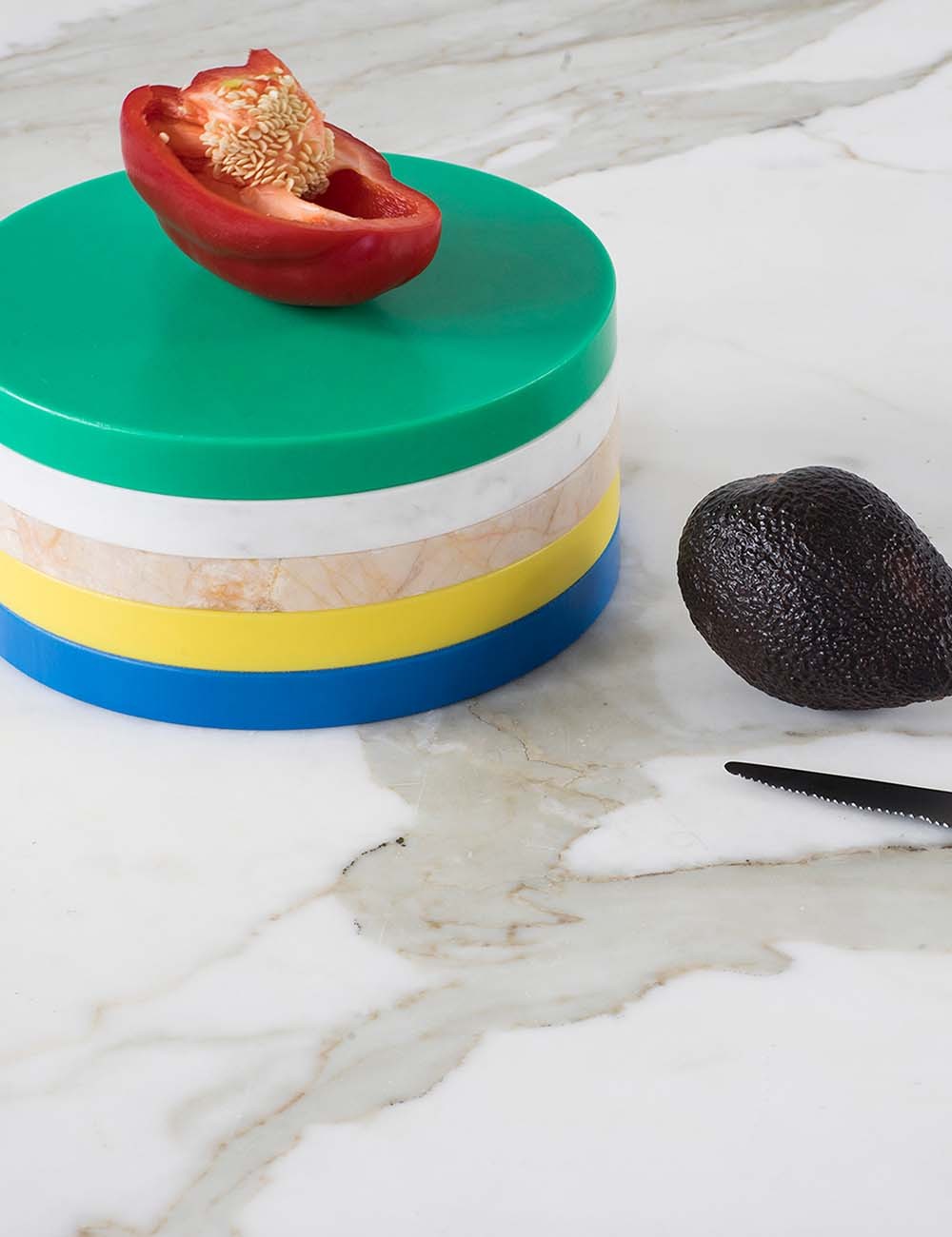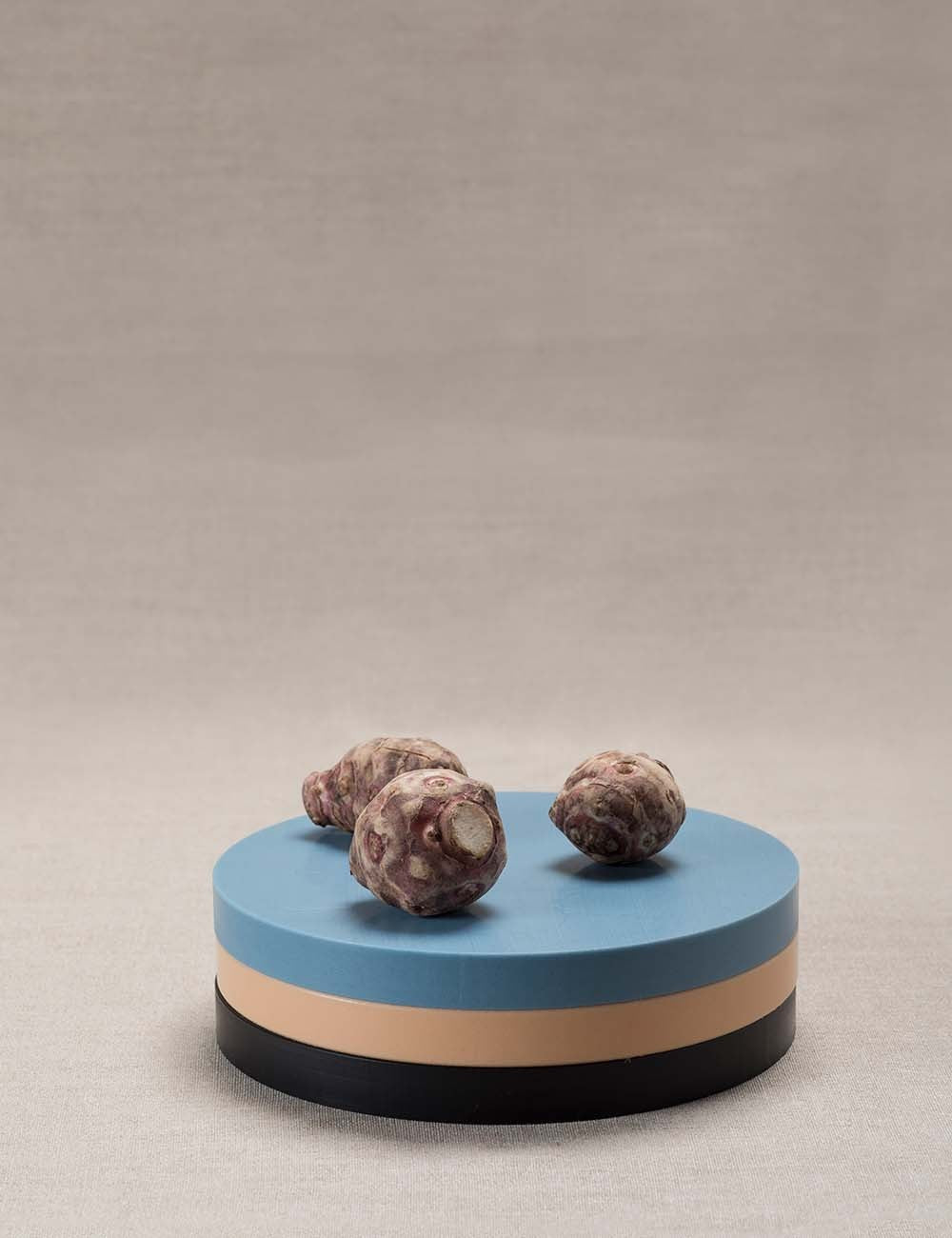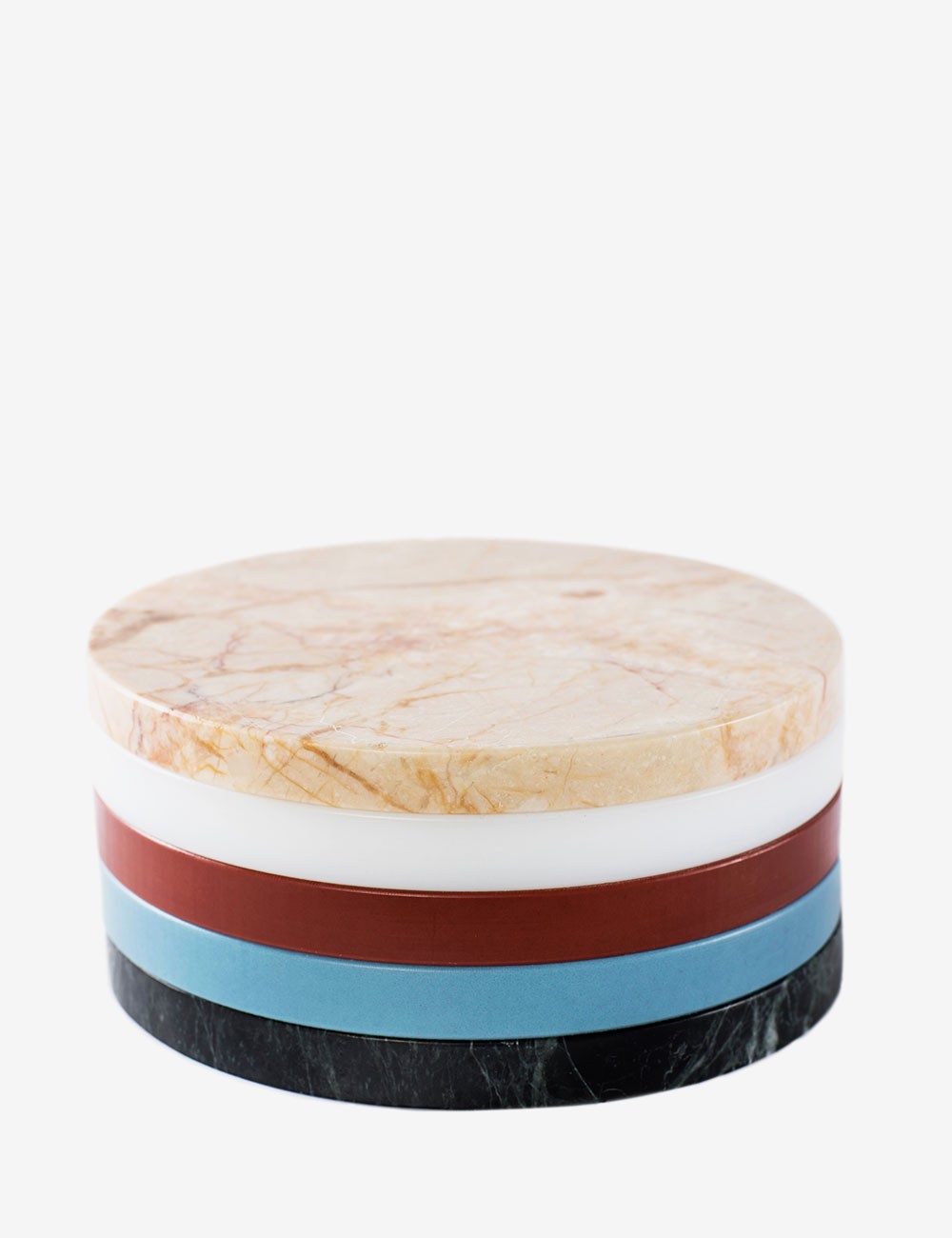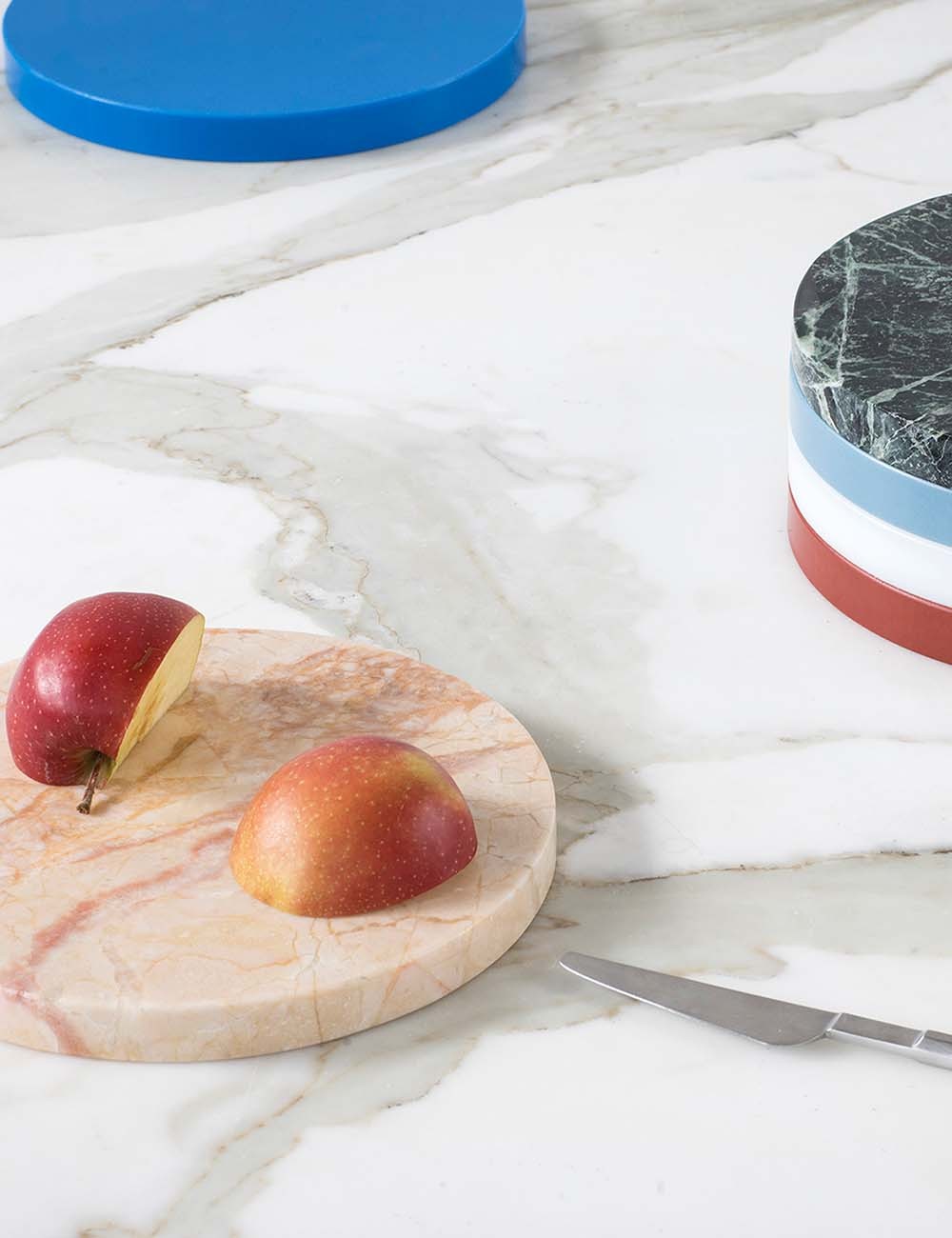 Muller Van Severen concebeu vários conjuntos de cinco objectos em forma de círculo, finamente afinados, para serem utilizados como tabuleiros de comida.
