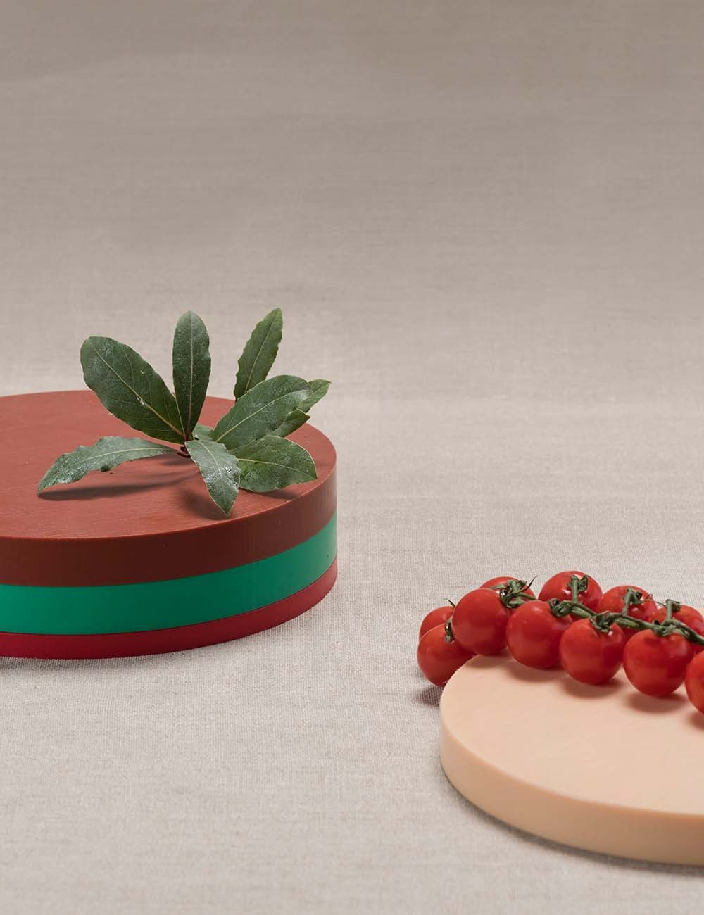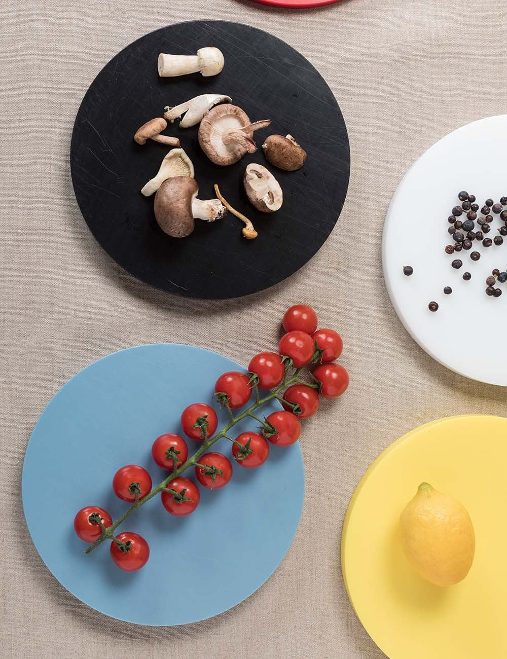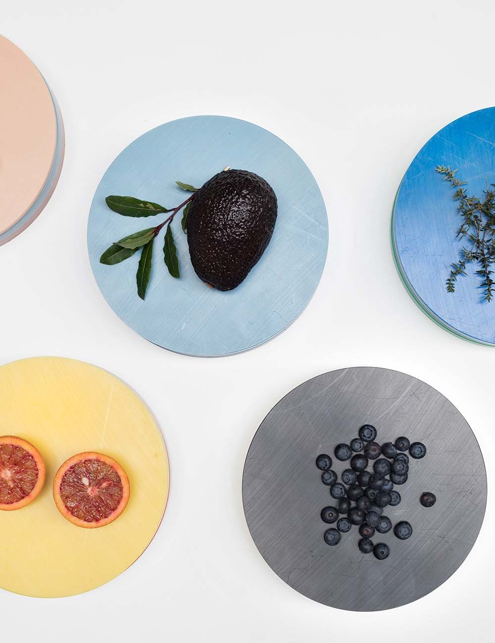 Muller Van Severen concebeu vários conjuntos de cinco objectos em forma de círculo, finamente afinados, para serem utilizados como tabuleiros de comida.