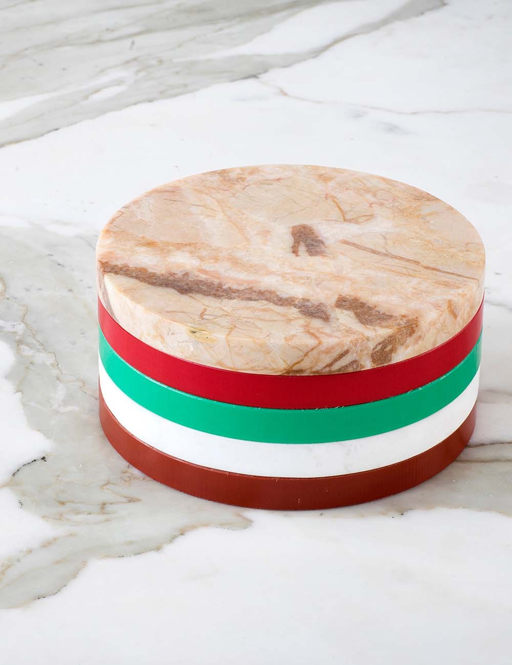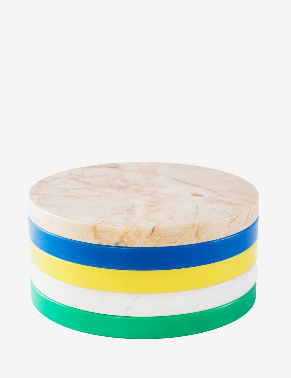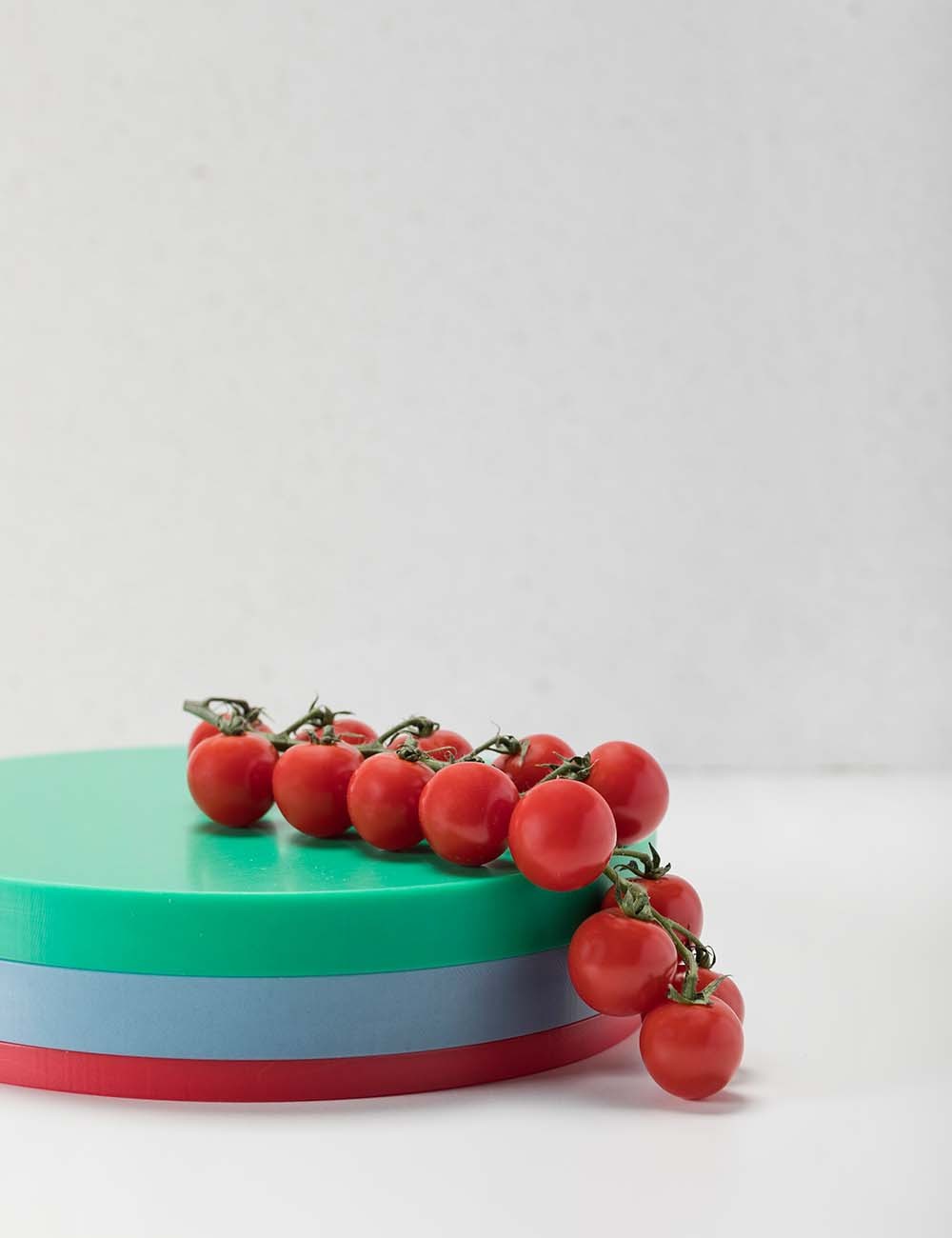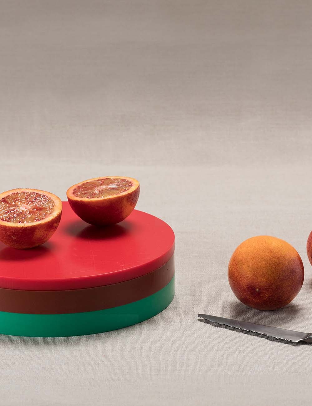 Muller Van Severen concebeu vários conjuntos de cinco objectos em forma de círculo, finamente afinados, para serem utilizados como tabuleiros de comida.