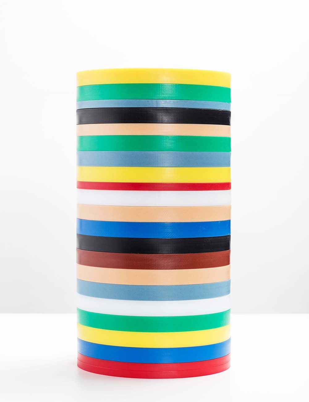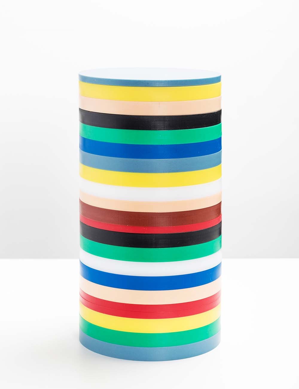 Five Circles é composto por três discos de polietileno e dois discos de mármore. Empilhados, estes cinco discos, com 21 cm de diâmetro e 2 cm de espessura, formam uma escultura colorida sobre a mesa.