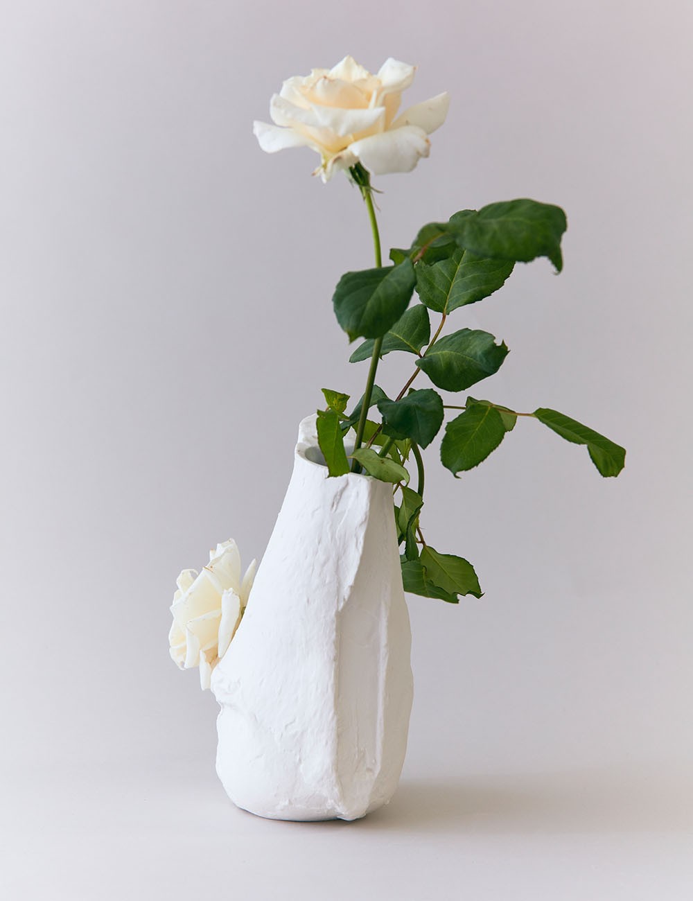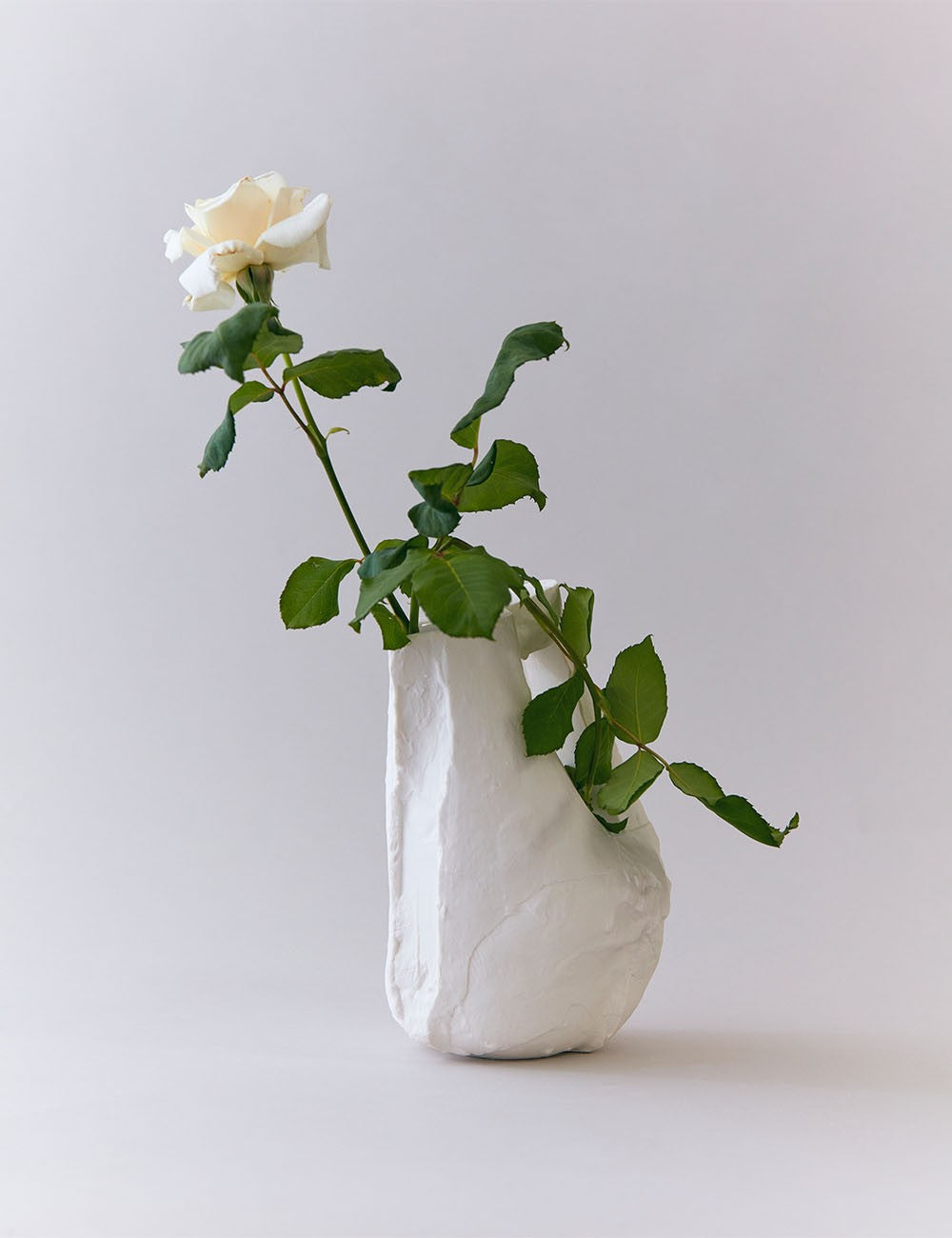 Cada peça mistura a atmosfera da arte antiga com o modernismo, criada através de um processo intuitivo e artesanal que abraça as imperfeições como esculturas erodidas.