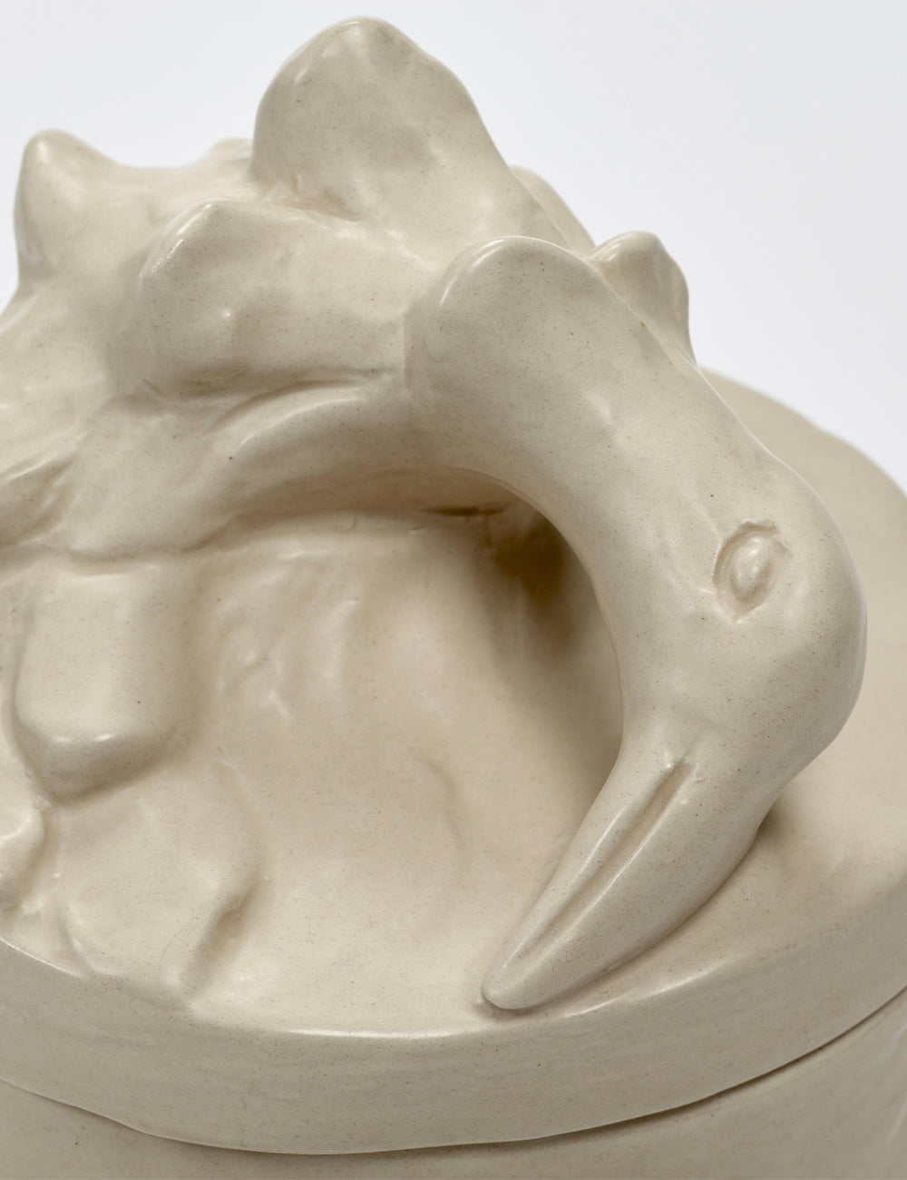 - Recipientes de cerâmica com tampa, decorados com formas e motivos naturais.