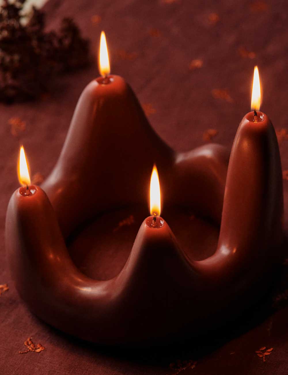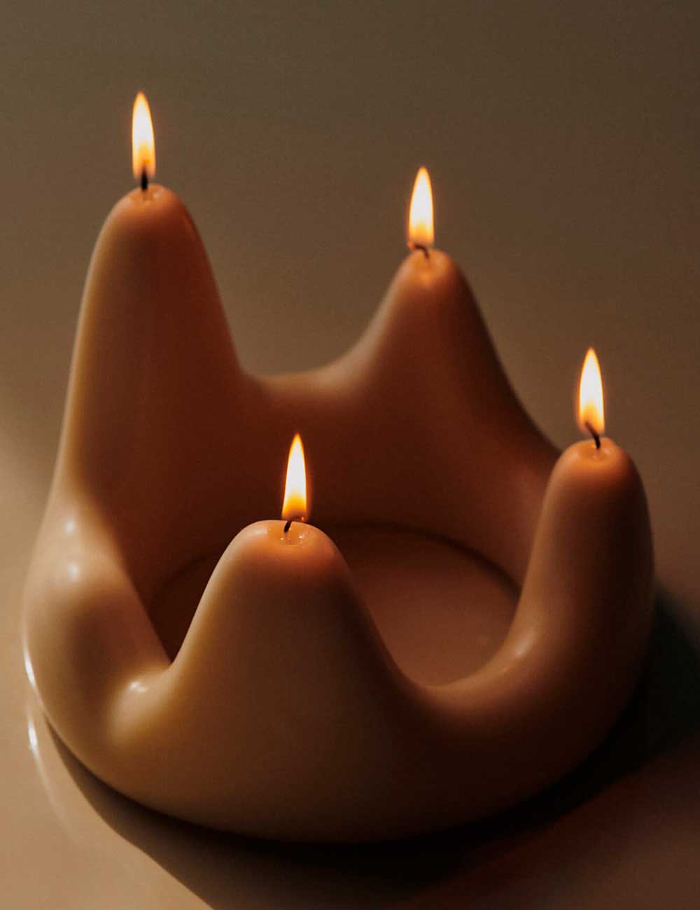 O Stala Candle Ring é inspirado nas estalagmites naturais, com curvas fluidas e quatro pontas que evocam uma expressão suave e fundida. Com quatro pavios integrados, esta peça funciona tanto como vela decorativa quanto como centro de mesa ousado, trazendo aconchego e um toque artístico a qualquer ambiente.